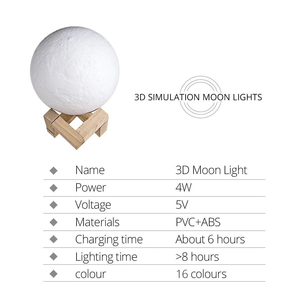 1 * лунный свет1 * 24-кнопочный пульт дистанционного управления (без батареи)1 * USB-кабель для зарядки1 деревянный кронштейнПримечание: Только 16 цветовых типов с 24-клавишным пультом дистанционного управления