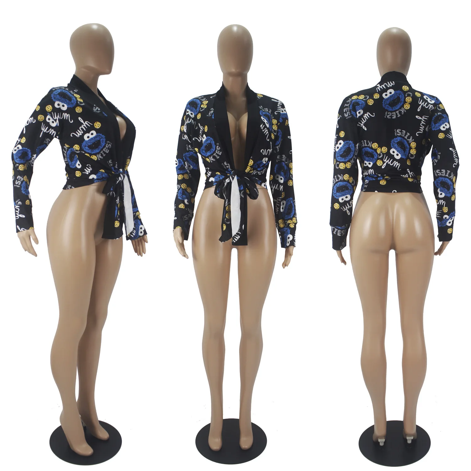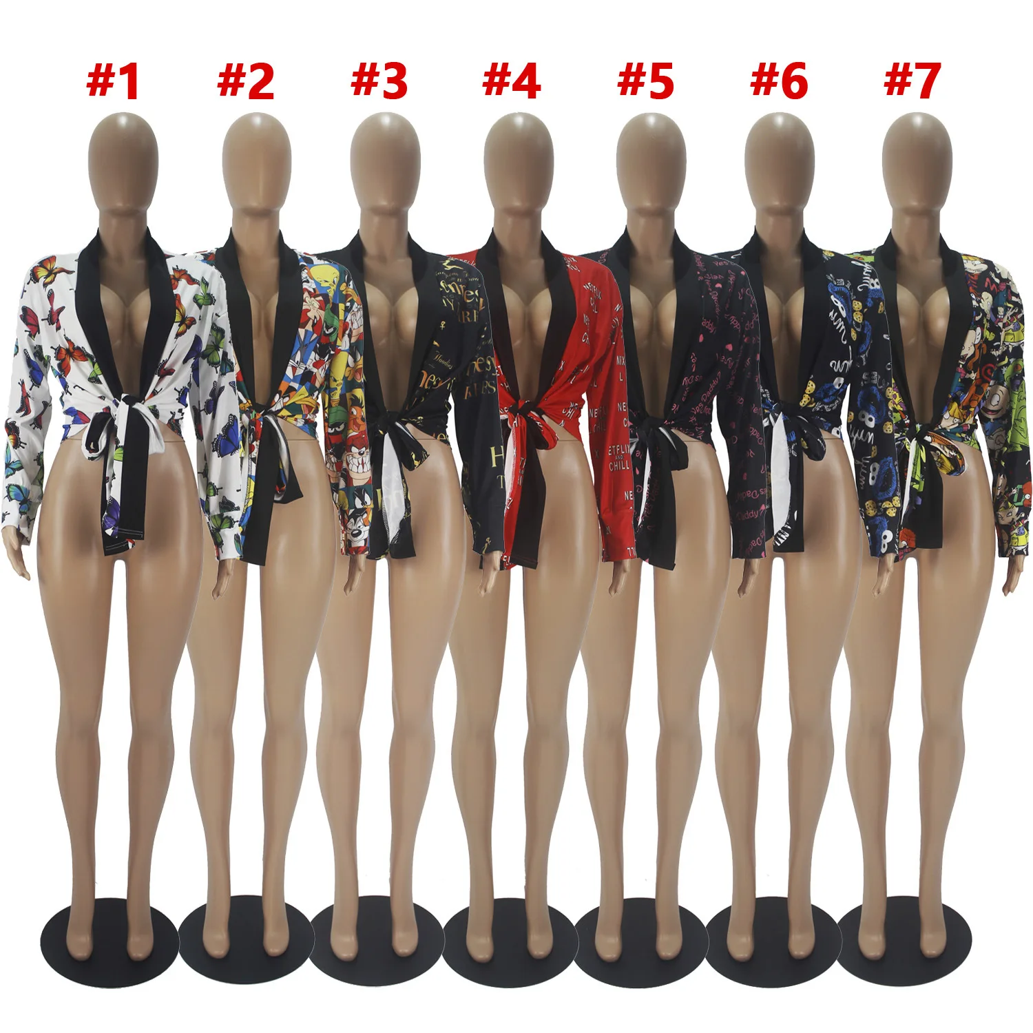 Модная короткая накидка Adogirl с принтом бабочки и узлом, повседневный топ в стиле пэчворк с длинным рукавом, свободное короткое пальто на шнуровке, женская одежда