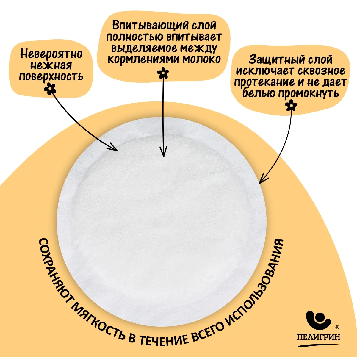 Прокладки - вкладыши лактационные одноразовые для груди 60 шт. Пелигрин ПВЛ60