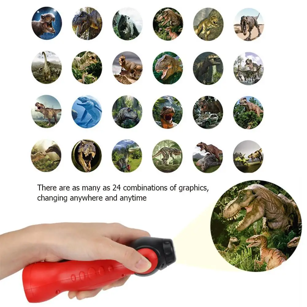 Светодиодный фонарик для детского сна с 24 узорами, мультяшный дино...