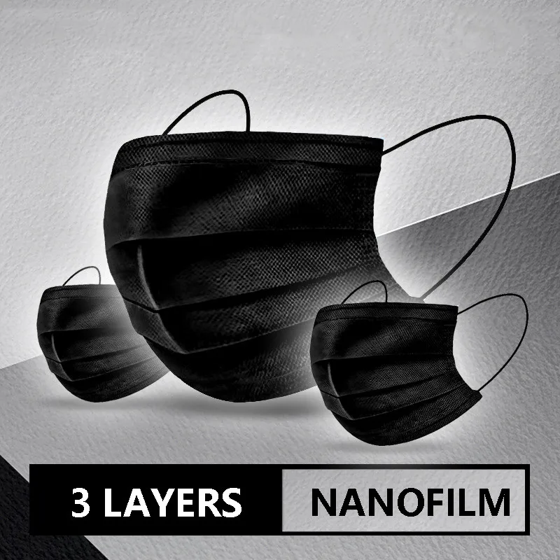 Маски черные одноразовые, 3 слоя, 103050100200500 шт.