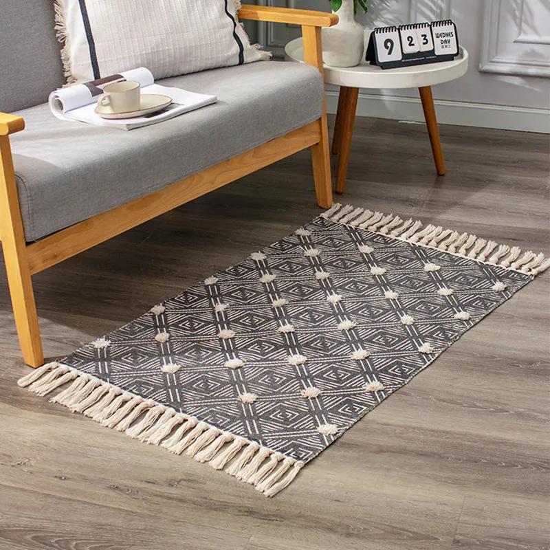 Коврик из хлопка и льна в стиле ретро, богемный гобелен ручной работы, ковер с бахромой для дома, гостиной, спальни, 60x90 см, коврик с геометрическим орнаментом