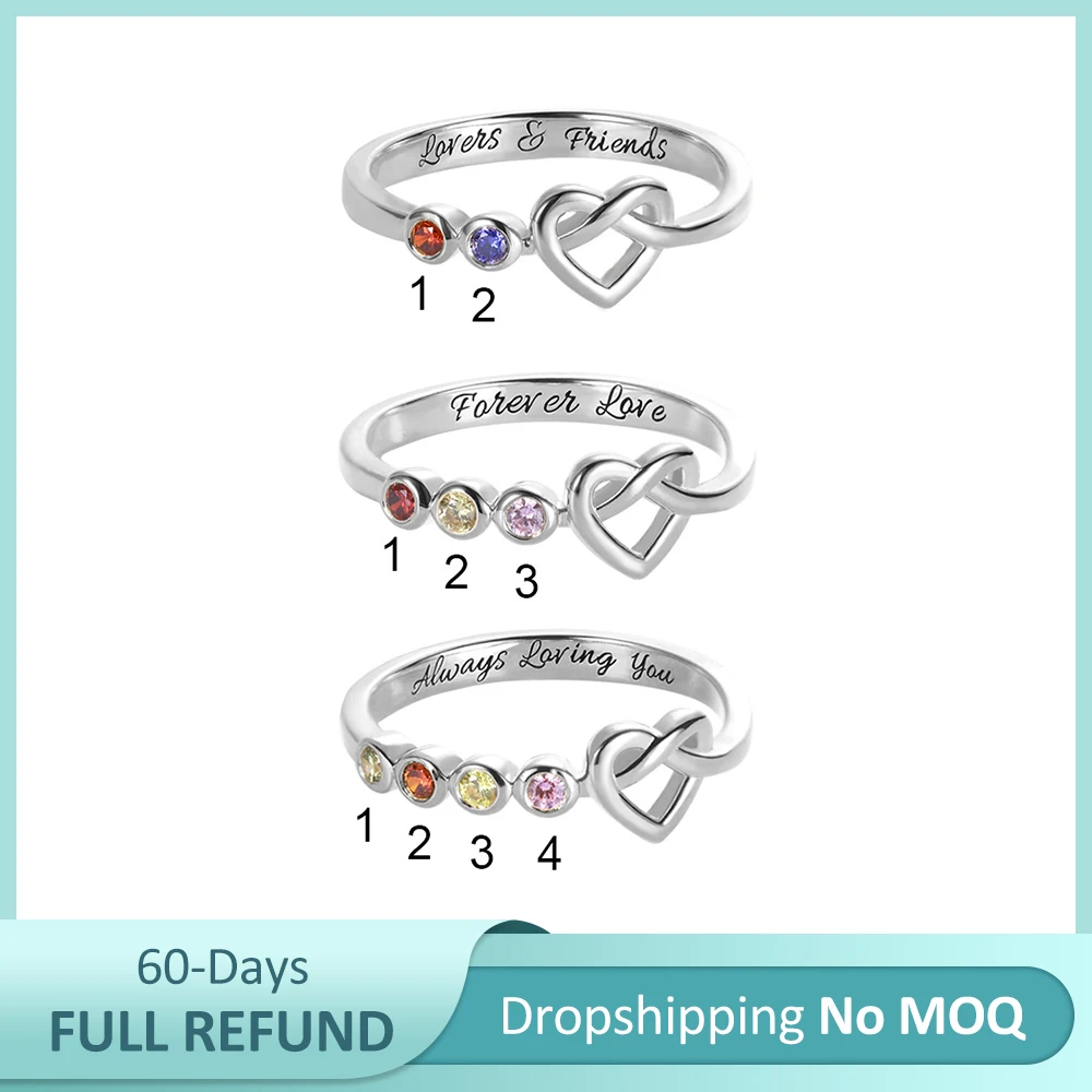 Uonney, оптовая продажа, персонализированное кольцо с камнем-талисманом в форме сердца, индивидуальное кольцо с гравировкой сердца, идеальный подарок на Рождество, День святого Валентина для нее