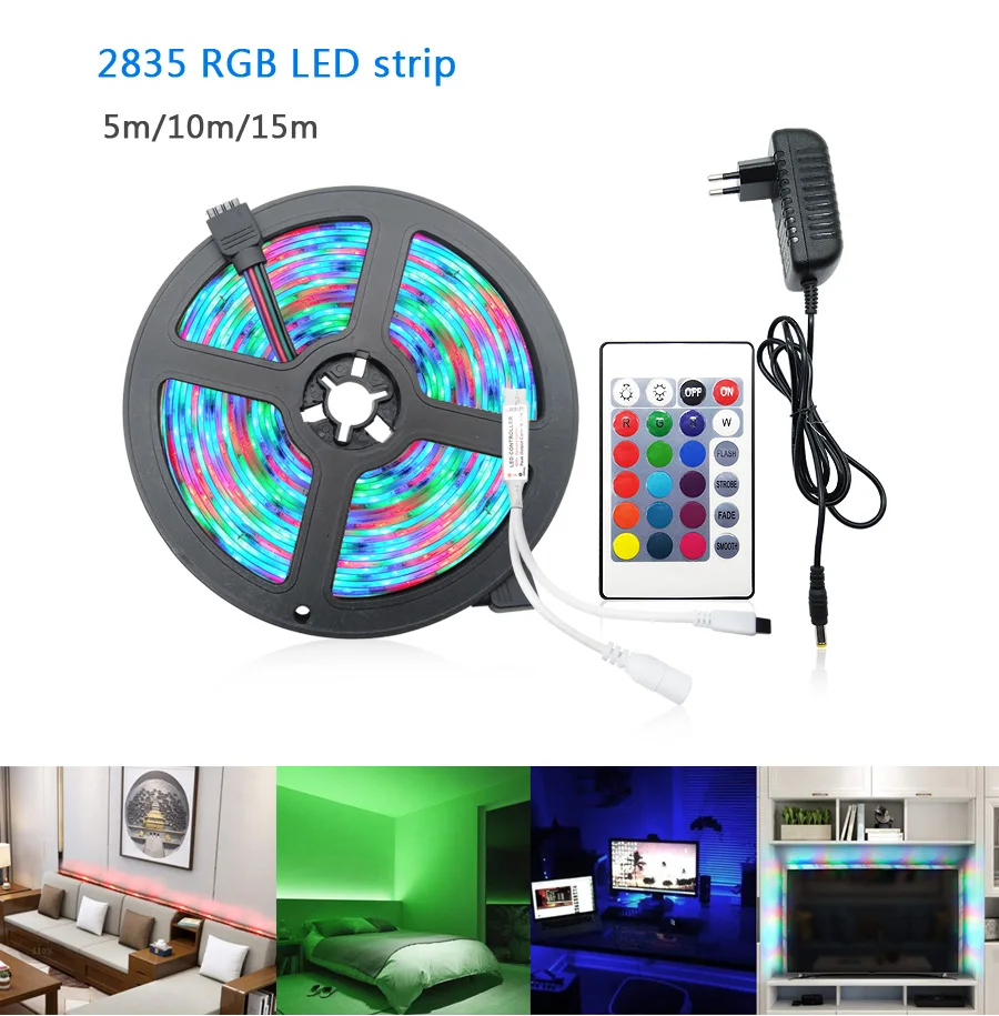 5 м 10 м 15 м 20 м Светодиодная лента 5050 2835 IP20 RGB Светодиодная лента светильник гибкая лента полоса DC 12 В RGB Диодная лента ИК-контроллер адаптер