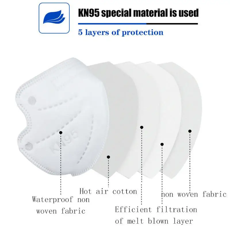 Маска для лица Fpp2 для взрослых Kn95, многоцветная Защитная четырехслойная защитная маска Ffp2 Mondkapjes