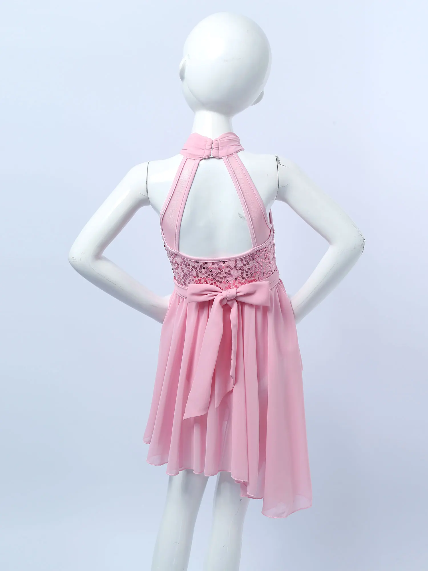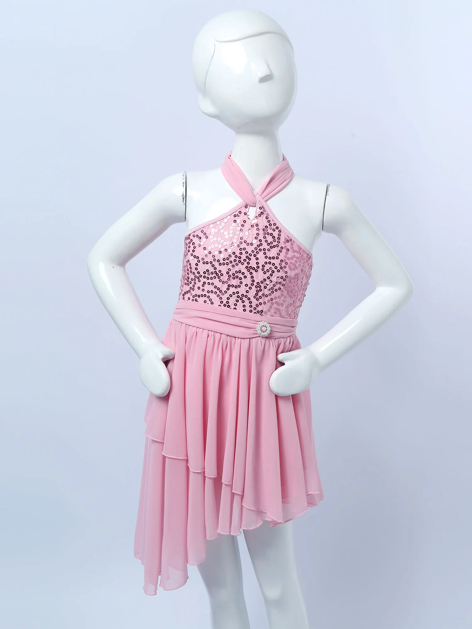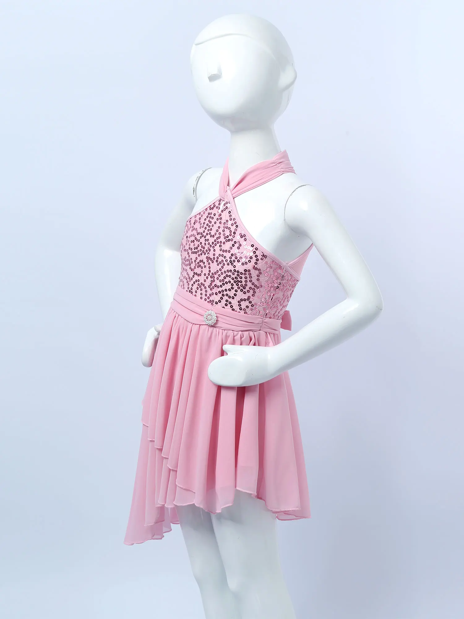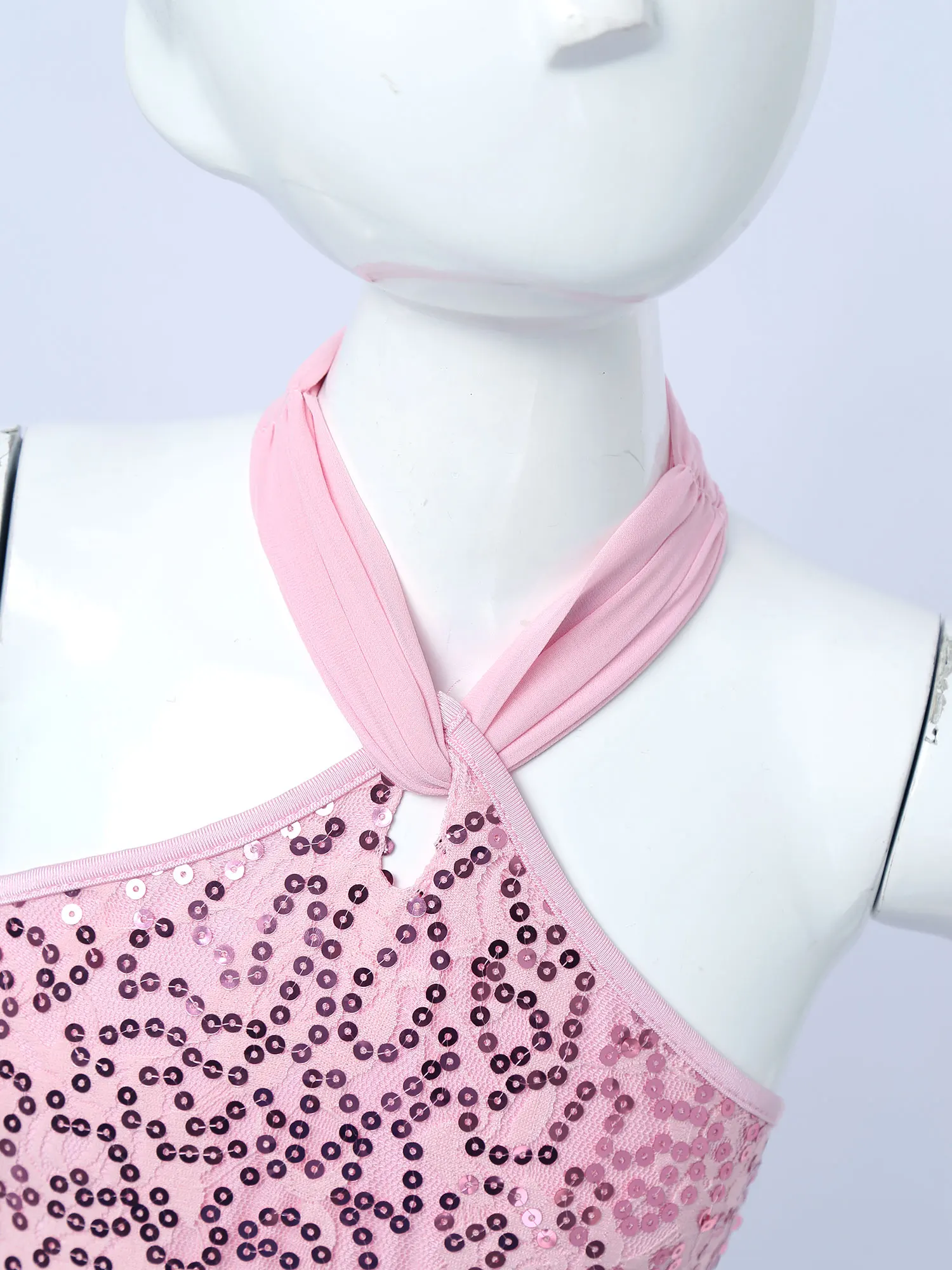 Розовый с блестками, платье для танцев для девочек балетное гимнастическое платье с Bulit в шортах, современная танцевальная одежда в стиле Латинской Танцы костюмы для выступлений; Танцевальная одежда