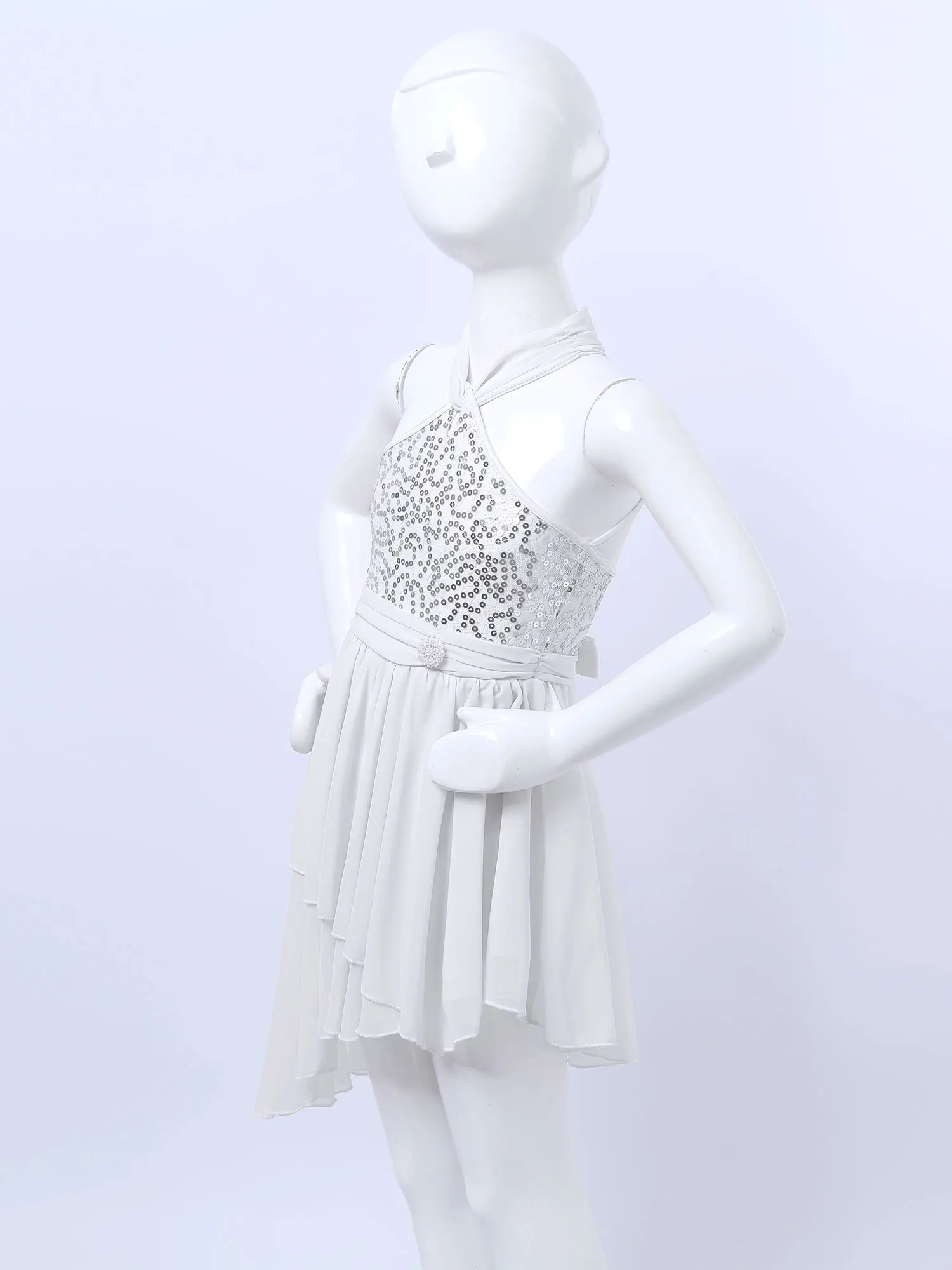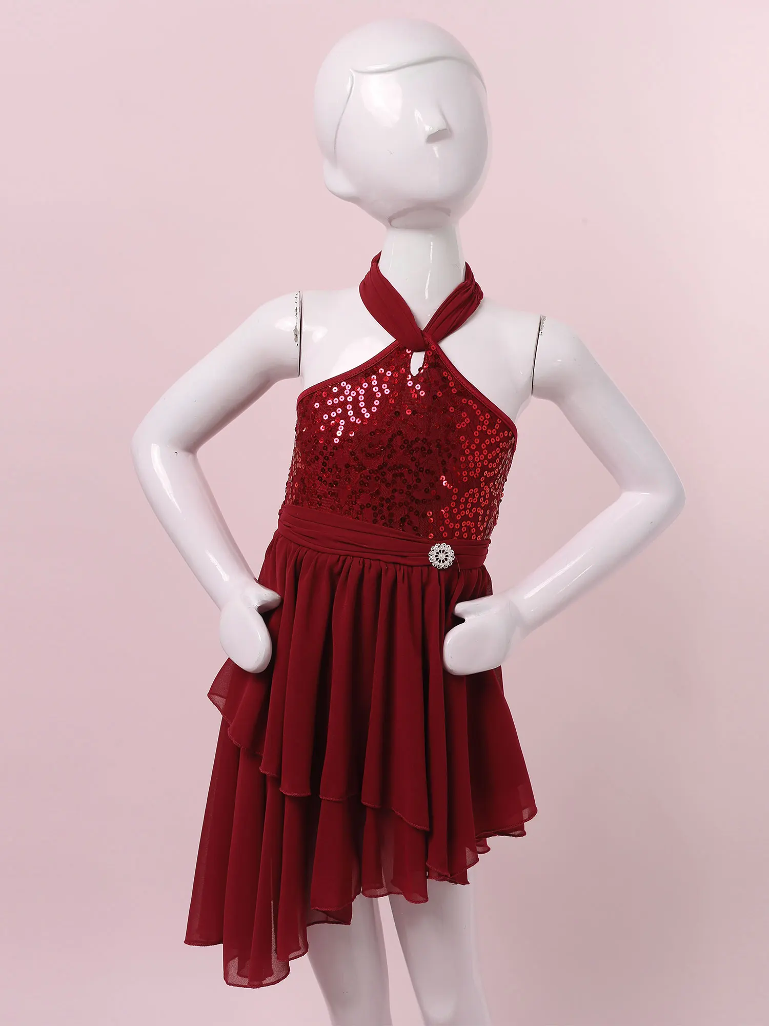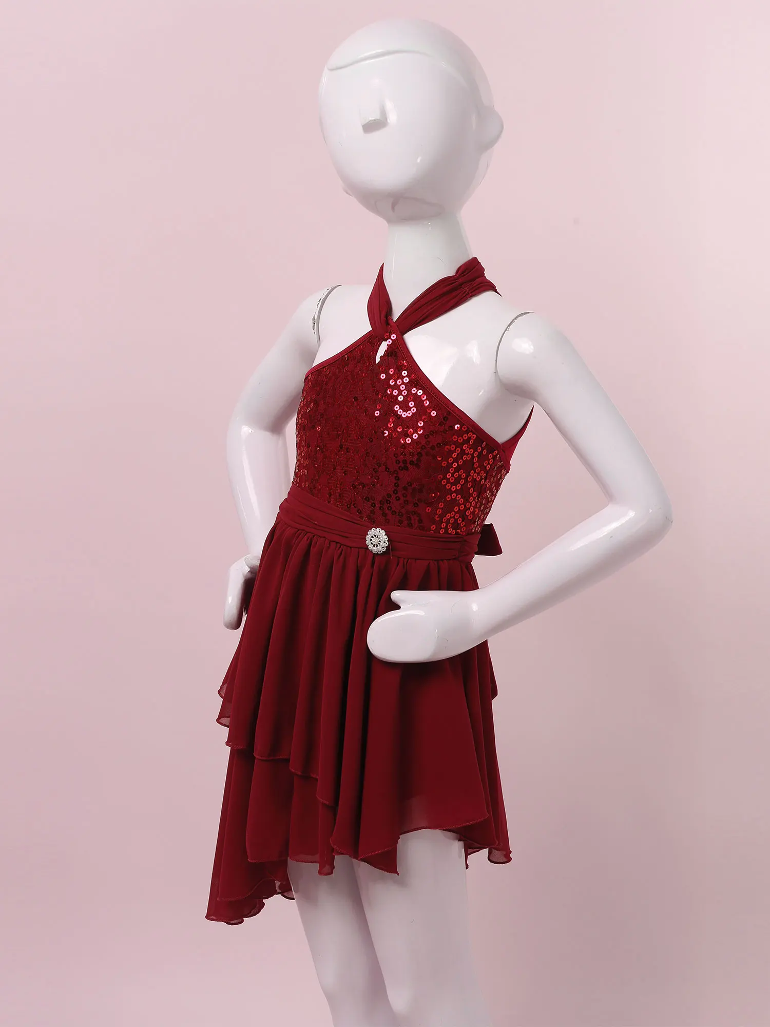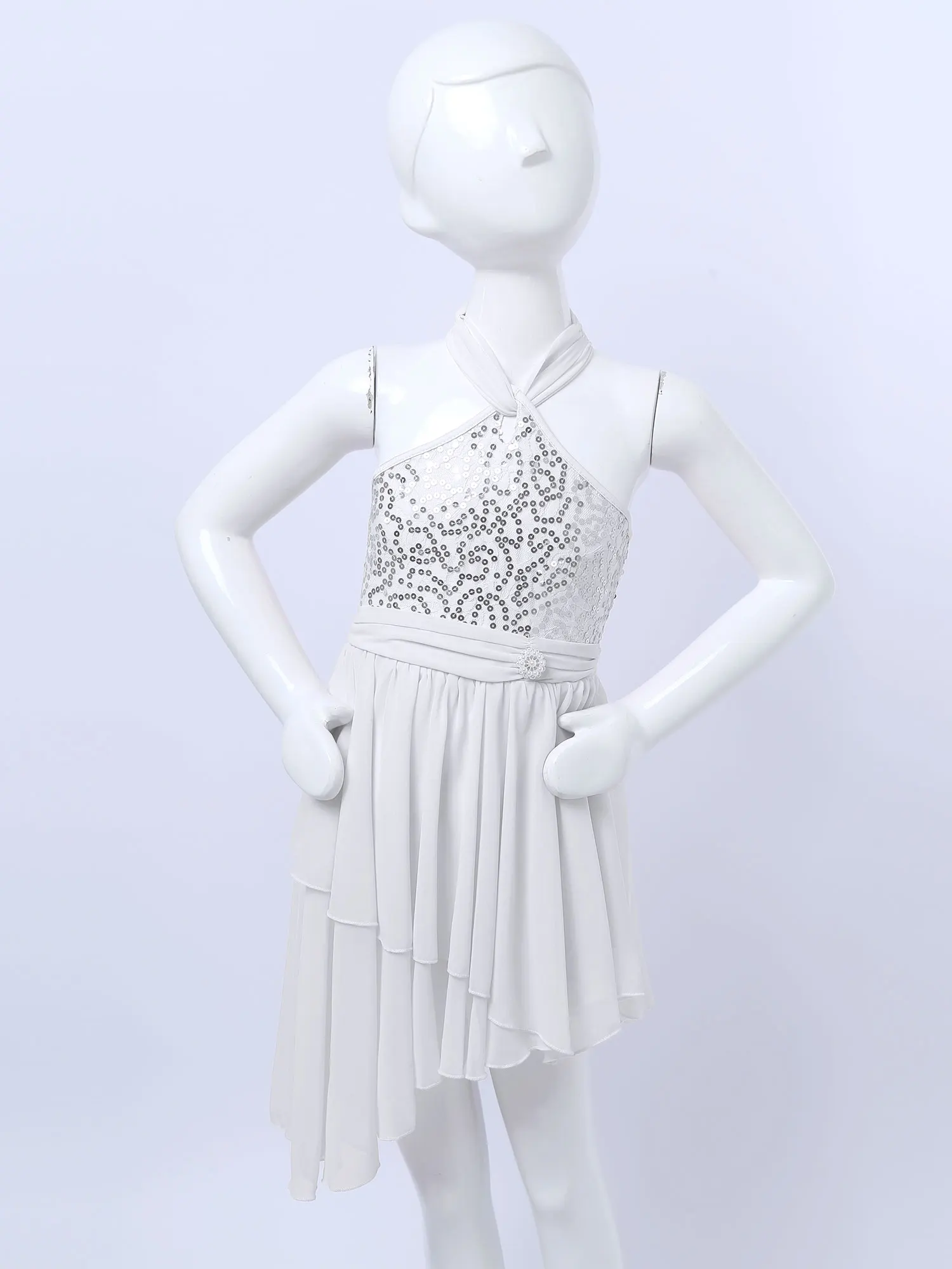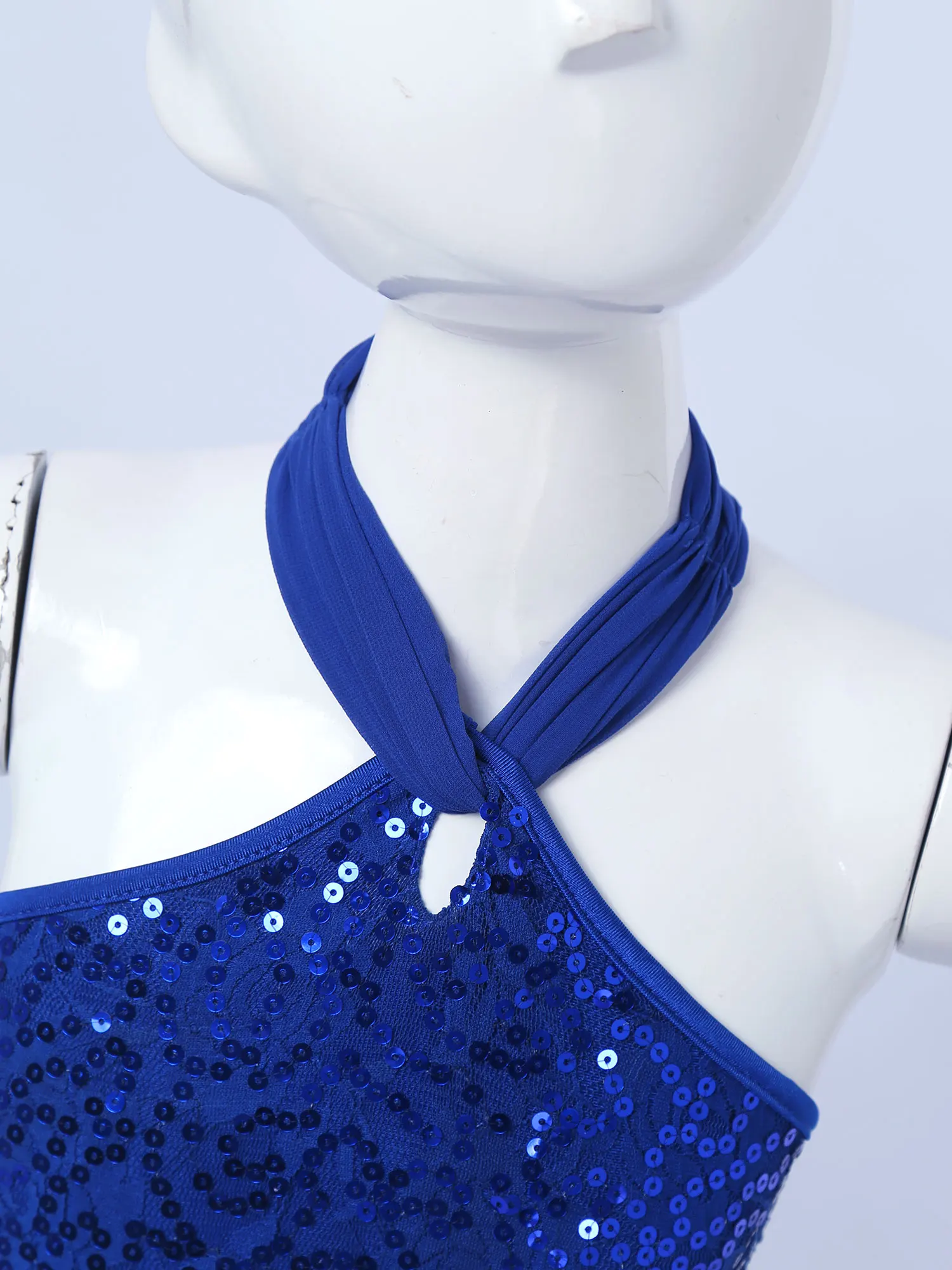 #6-14, детское блестящее Сетчатое платье без рукавов с блестками для балета и танцев, шорты-трико, Современный Джаз, Латинская Танцующая фигурка, для катания на коньках, на день рожденияКостюмы