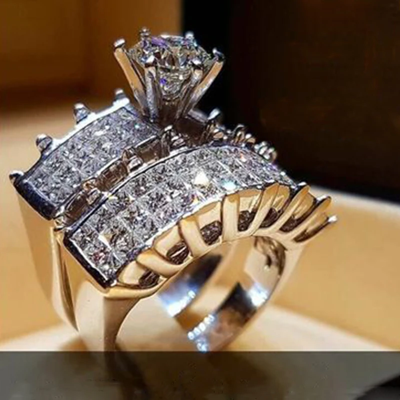 2 шт.компл. кольца Элегантные Роскошные обручальные кольца для женщ...