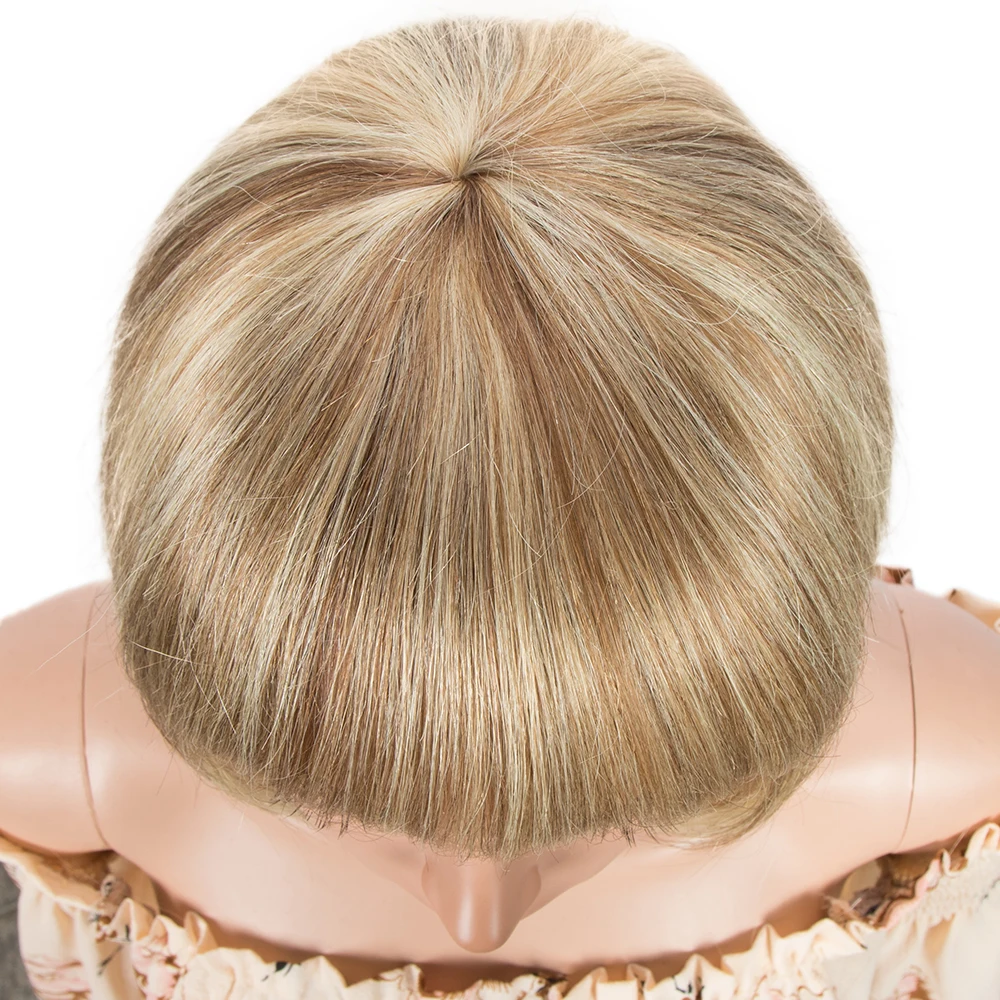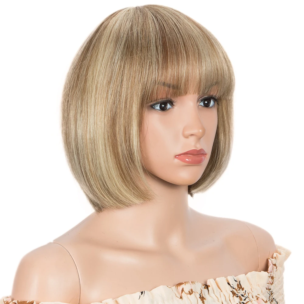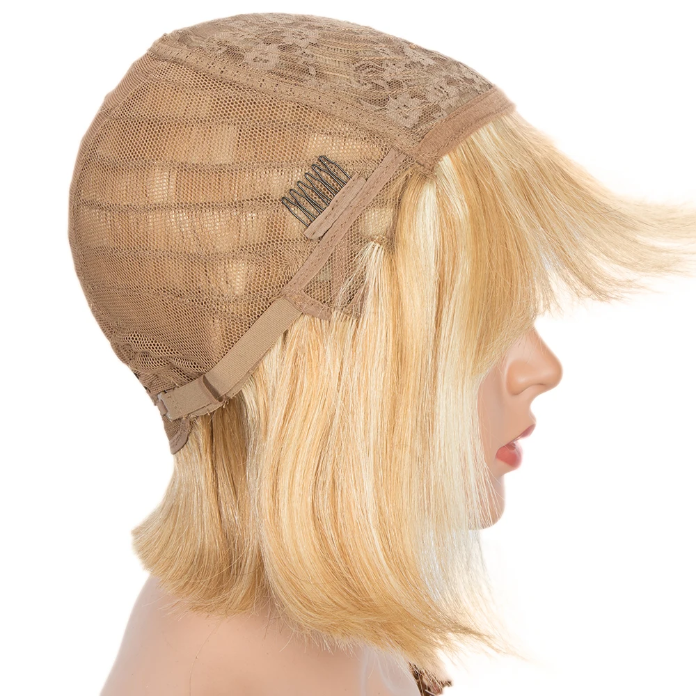 Короткие парики из человеческих волос гладкие бразильские женские парики блонд стрижка Пикси, прямые, Боб, парик с челкой