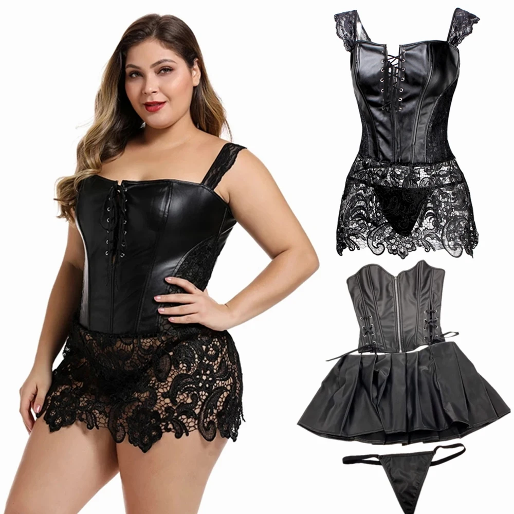 Женский латексный костюм размера плюс S-6XL, сексуальное нижнее белье из искусственной кожи, бюстье, корсеты, готические костюмы для косплея в стиле панк