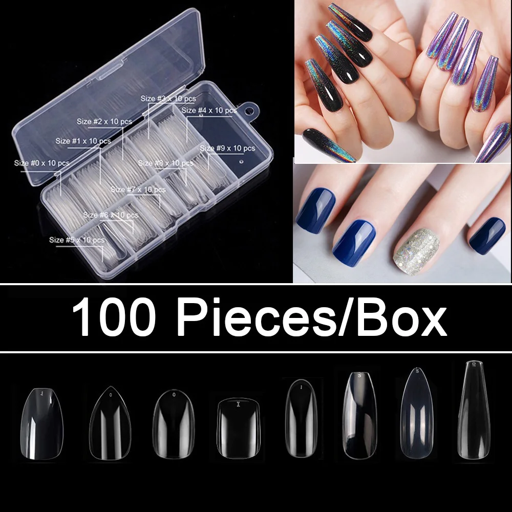 100 шт.кор. полное покрытие накладные ногти гроб накладные ногти ср...