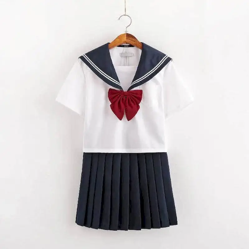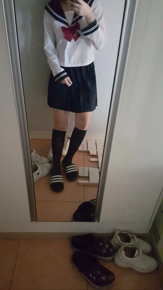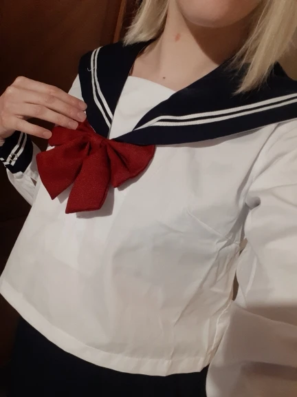 Форма огонь! Заказывала самый маленький размер-S, т.к. боялась, что юбка будет на мне висеть (рост 158см, талия 59, ношу обычно xs ), и все село идеально:) хорошо сшита, ткань плотная, не заметила, чтобы что-то просвечивало, посторонних запахов не было. Рукава на заклепках, сбоку рубашки(?) замочек дабы влезть и ничего не порвать, воротник пришит, оборотная сторона его из материала рубахи. У юбки сбоку замок, с которым я долго тупила( не встречала подобных нигде пока, но держит крепко) да, на юбке по подолу шла белая нить, аккуратно срезала ее. Бантик регулируется на ленте. В комплект к форме продавец вложил чёрные гольфы. Рекомендую :)