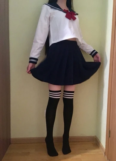 Покупал костюм в подарок (размер M) для девушки (рост 162, вес 43,5). Заказ пришел быстро, даже очень (до Санкт-Петербурга за 14 дней). Качественный полиэстер, приятный на ощупь и вид. Все в целости и сохранности. Также приехали чулки (при покупке в комплекте их не было), но они больше напоминают гольфы, коротенькие и ткань слишком тонкая, на фото другие чулки. Единственный минус комплекта - юбка слишком широкая в талии, нужно подшивать. Рекомендую к покупке для всех любителей японской культуры, а производителям спасибо