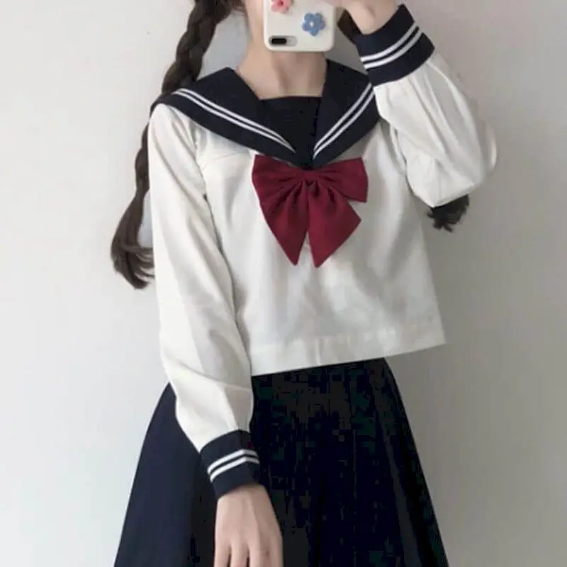 Костюм моряка, женский, японская форма jk, куртка для студентов в Корейском стиле, длинная и короткая юбка, Симпатичные рукава, школьный стиль колледжа