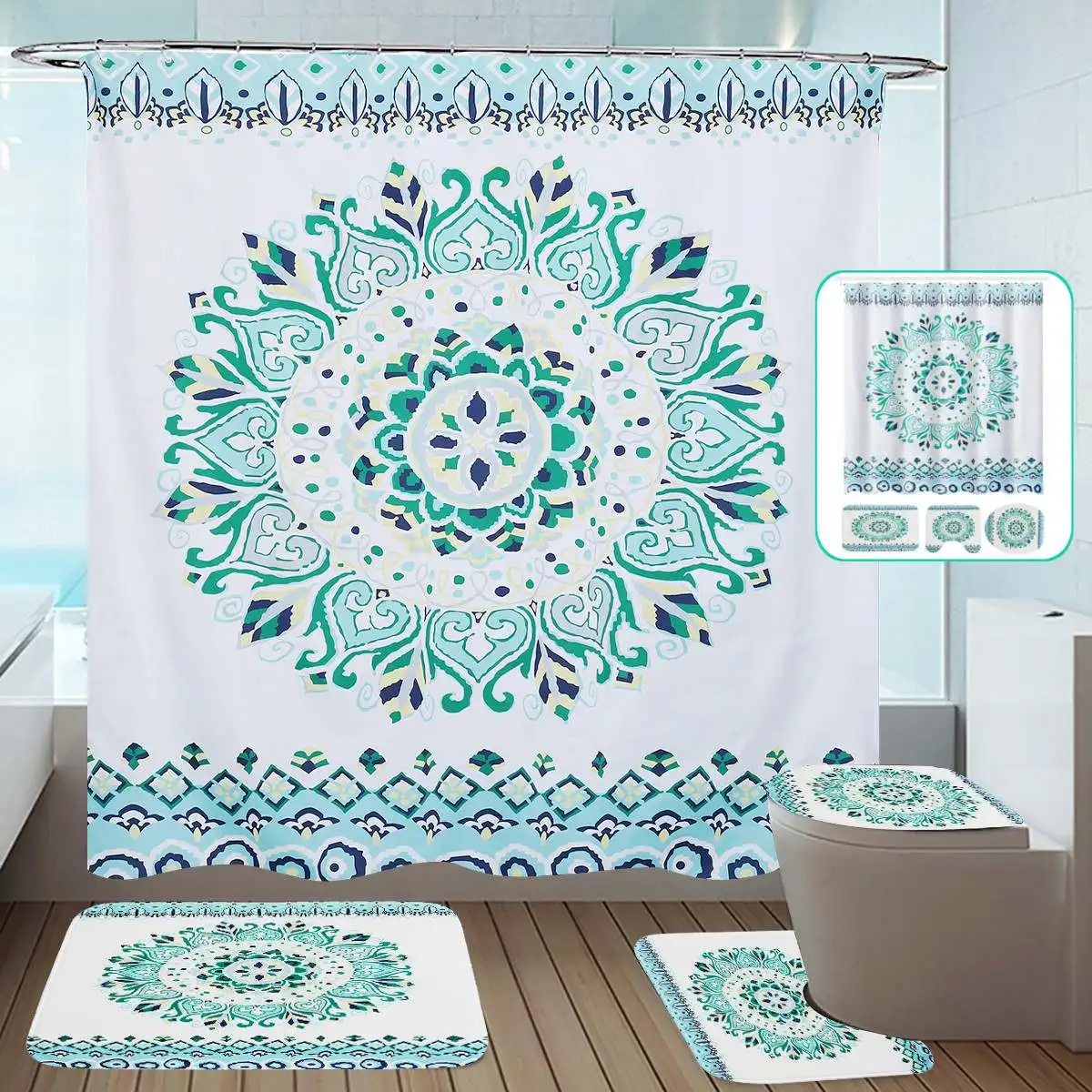 Водонепроницаемая занавеска для душа с мандалой, нескользящий Набор ковриков для ванной коврики для туалетаДомДекор