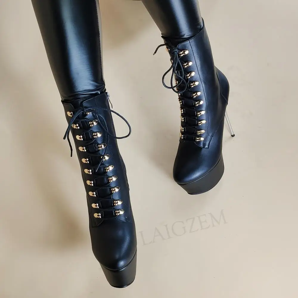 LAIGZEM супер женские ботильоны на платформе; Каблук 16 см туфли на шпильках, туфли для танцев на шесте; Вечерние Клубные черные женские туфли Размеры 33 41, 42, 43
