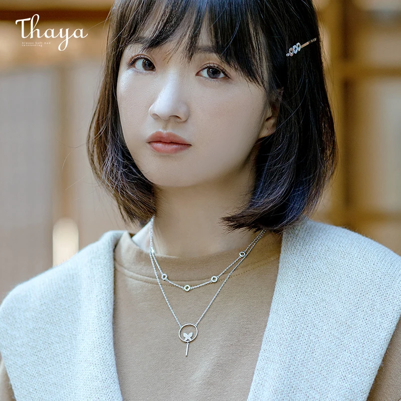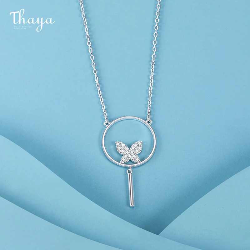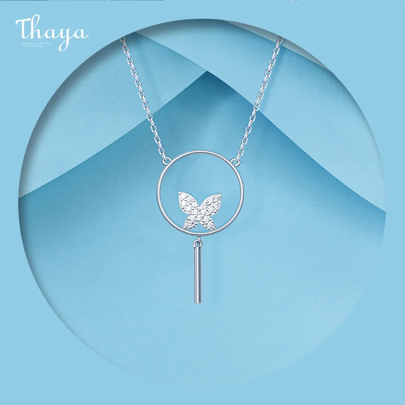 Колье Thaya серебряного цвета с бабочкой и кольцом, подвеска из белых кристаллов, колье 45 см, изысканные модные украшения, рождественский подарок