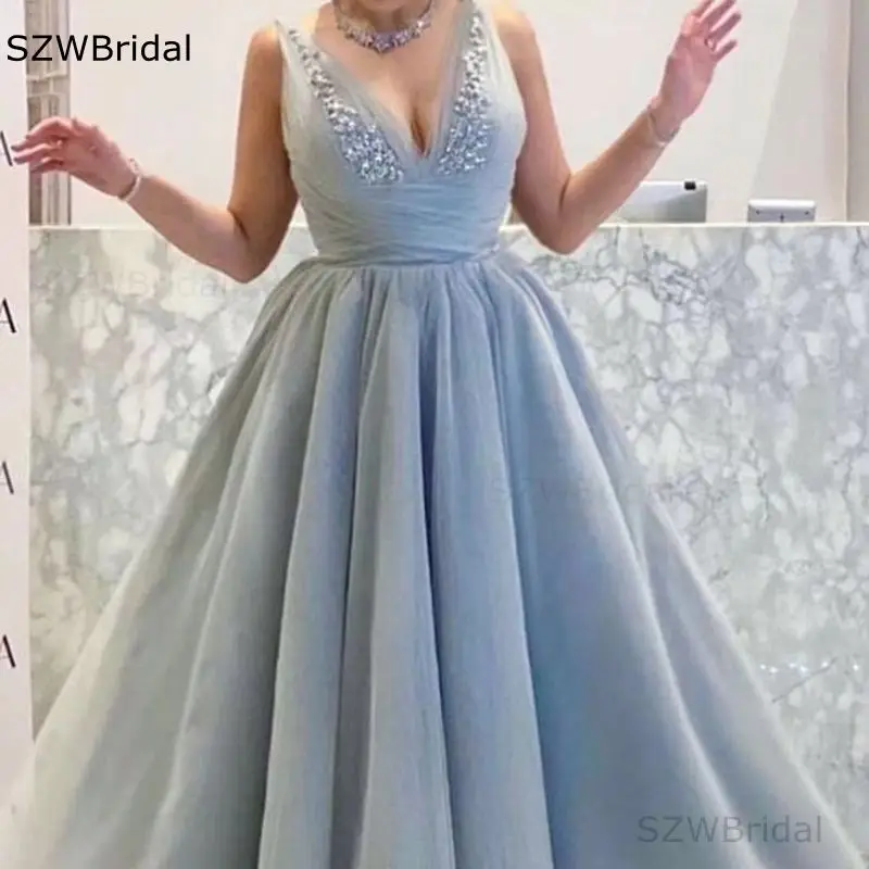 Женское вечернее платье-трапеция, с V-образным вырезом