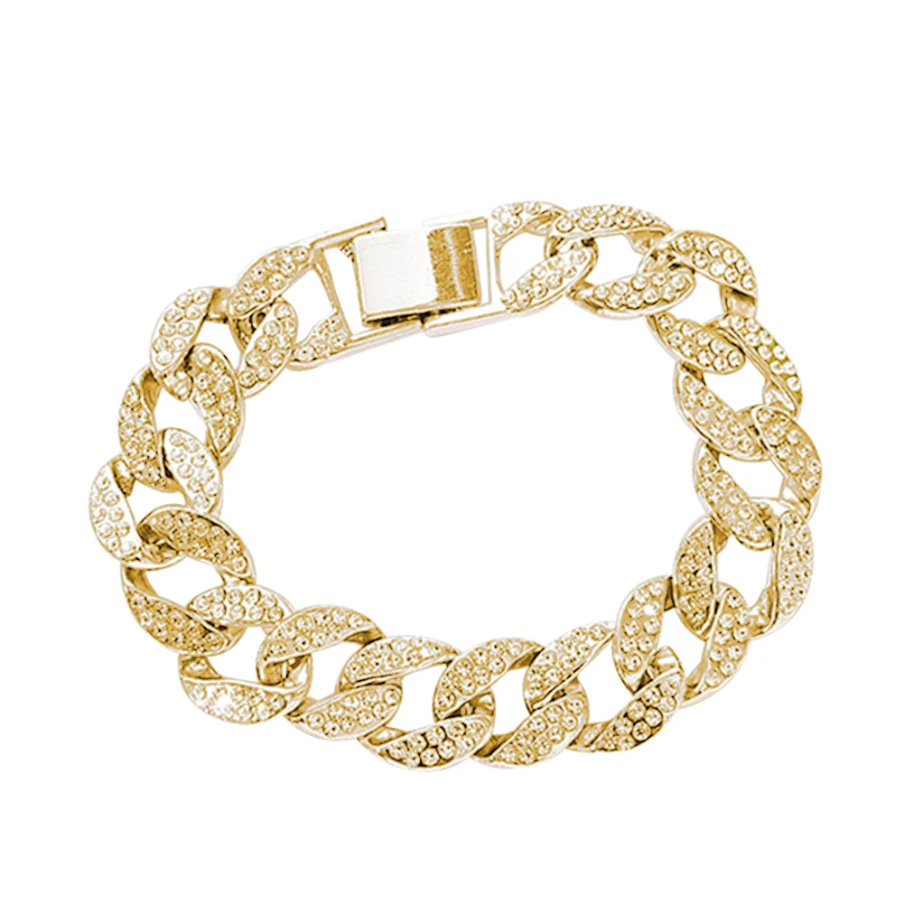 Модный металлический браслет-цепочка в стиле панк, мужские очаровательные Стразы Круглый браслет для путешествий, улиц, хип-хоп, бандаж, кружева, ночной клуб, гальваническое покрытие, массивные ювелирные изделия