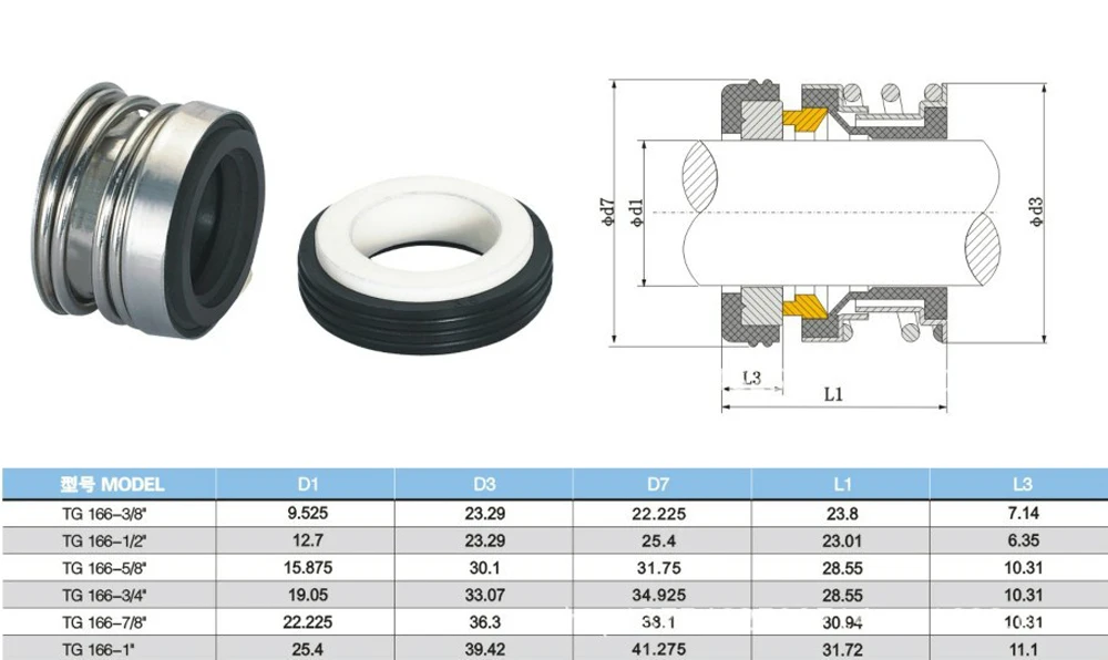 Уплотнение вала механического с одной спиральной пружиной для деталей водяного насоса, серии 166, подходит для 38, 12, 58, 34, 78, 1 дюйм