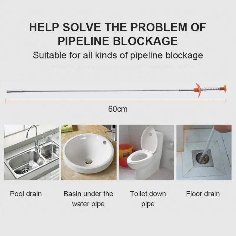 Инструмент для дноуглубления пружинной трубы, дренажная змея, раковина, уловитель для удаления мусора, кухонный уголок для ванной комнаты, 60 см23,6 дюйма