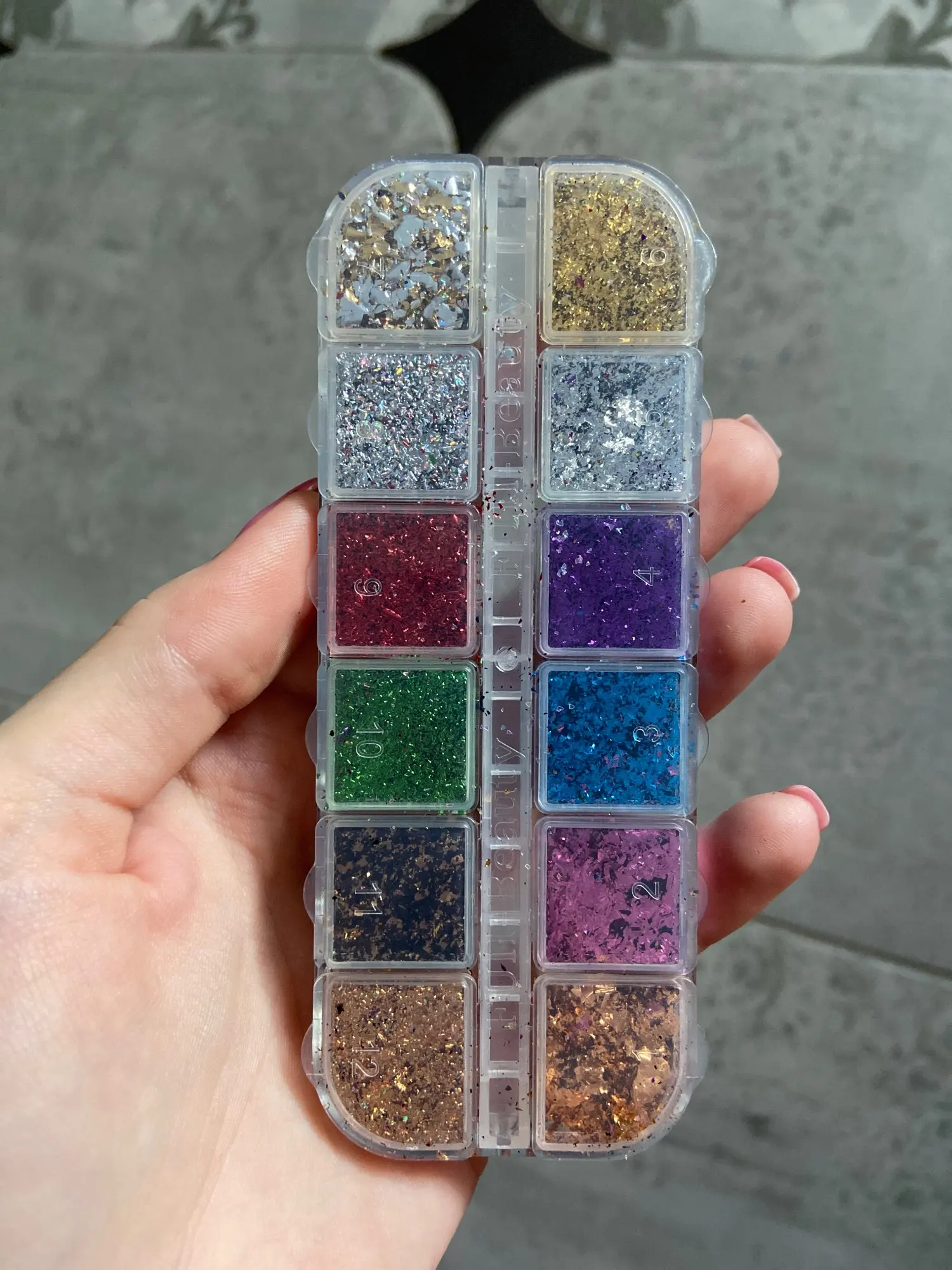 Блестящая Фольга для ногтей, блестки, нерегулярные, алюминий, золотой, красный, летний дизайн, набор для ногтей, блестящие хлопья, гелевые аксессуары для самостоятельного маникюра CH950