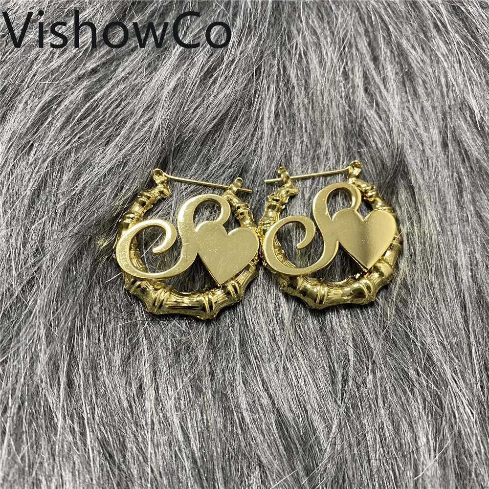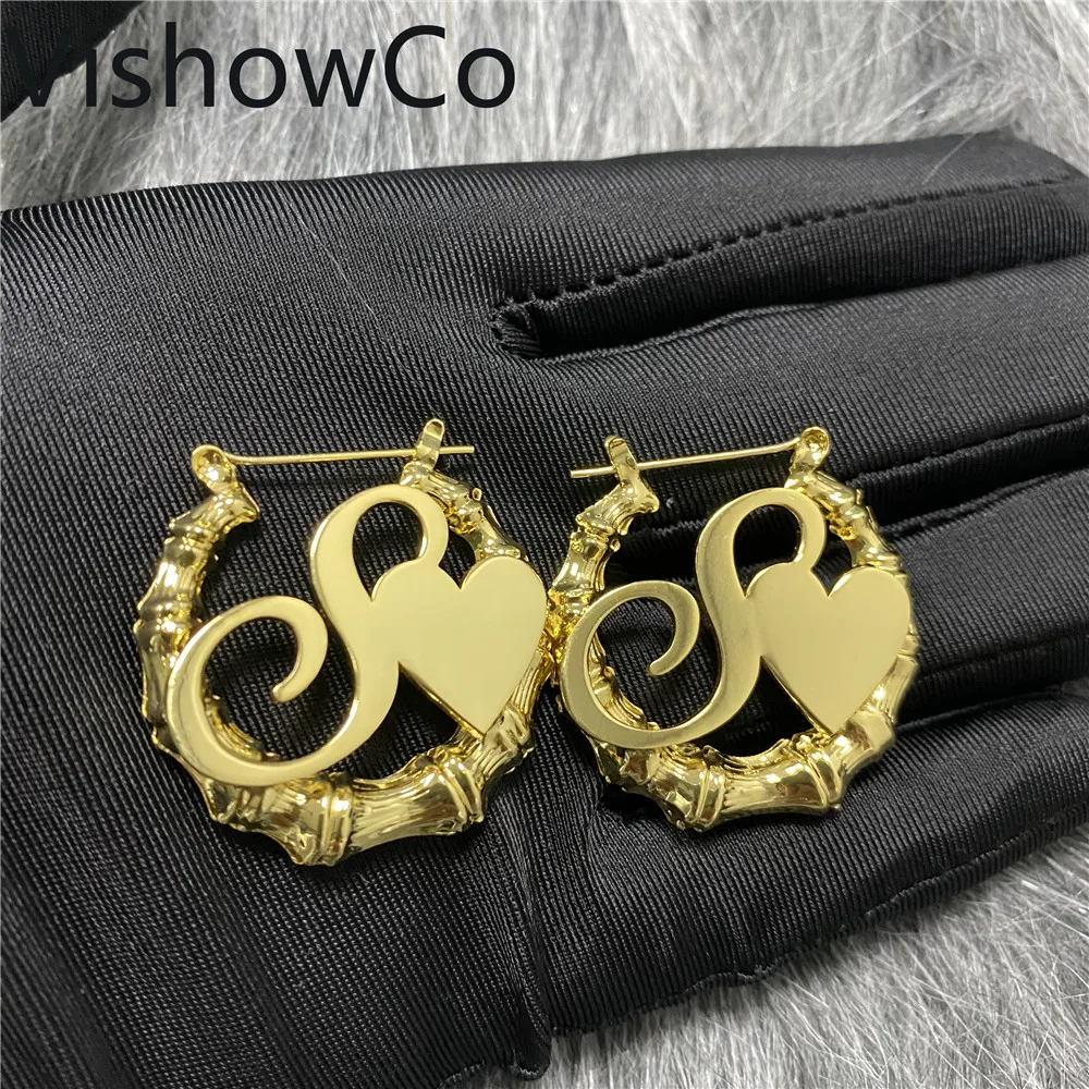 Индивидуальные серьги-кольца из бамбука, персонализированные серьги с именем, в форме сердца из бамбука, пикантные женские ювелирные изделия для девочек, модный подарок