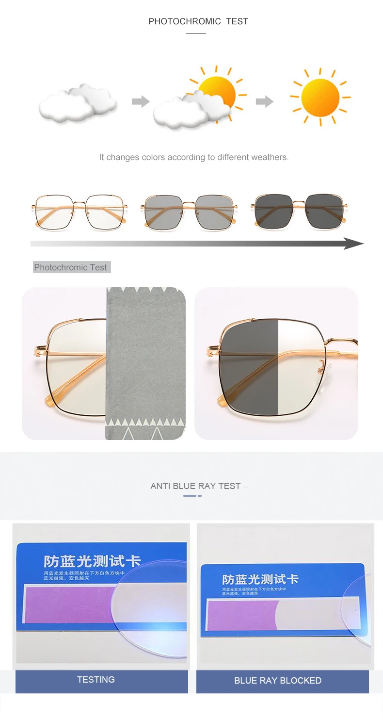 Очки унисекс с большой оправой, фотохромные серые очки с защитой от синего излучения, женские компьютерные очки и очки с защитой от синего излучения A1950