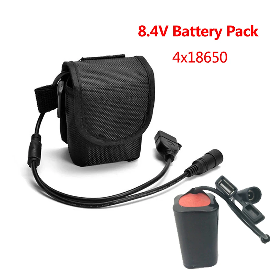 Аккумулятор 8,4 в, 6800 мА ч, 4x18650, 8,4 в, с разъемами USB + DC, для велосипедных фонарей, фар, велосипедных ячеек