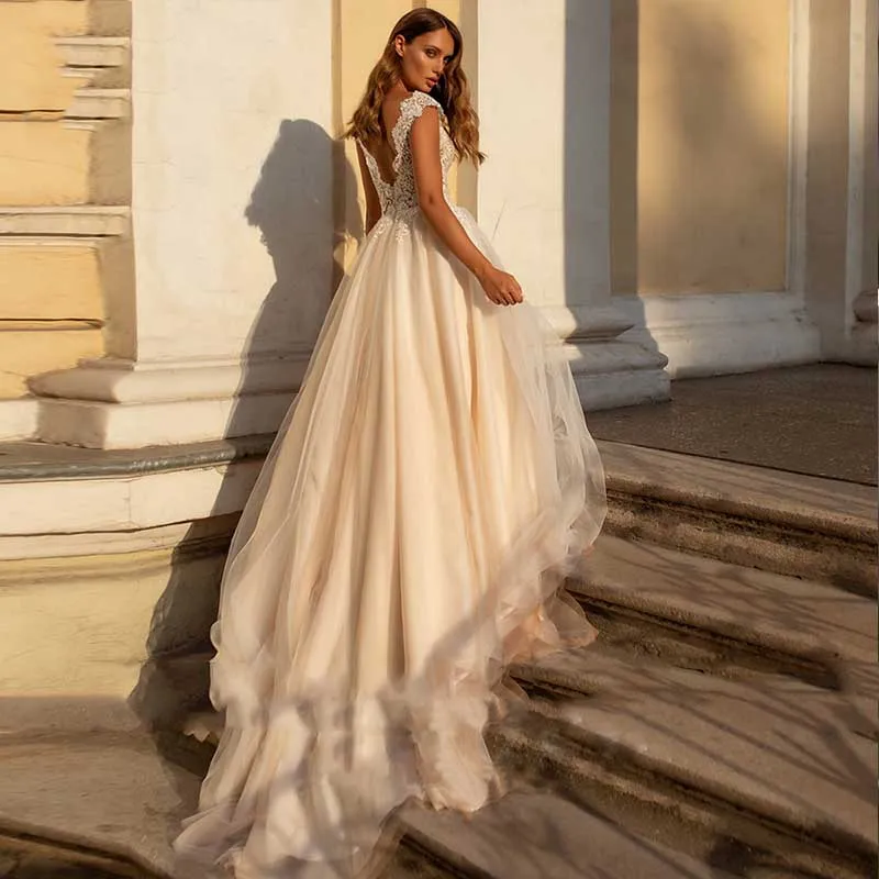 Женское свадебное платье с открытой спиной, бежевого цвета