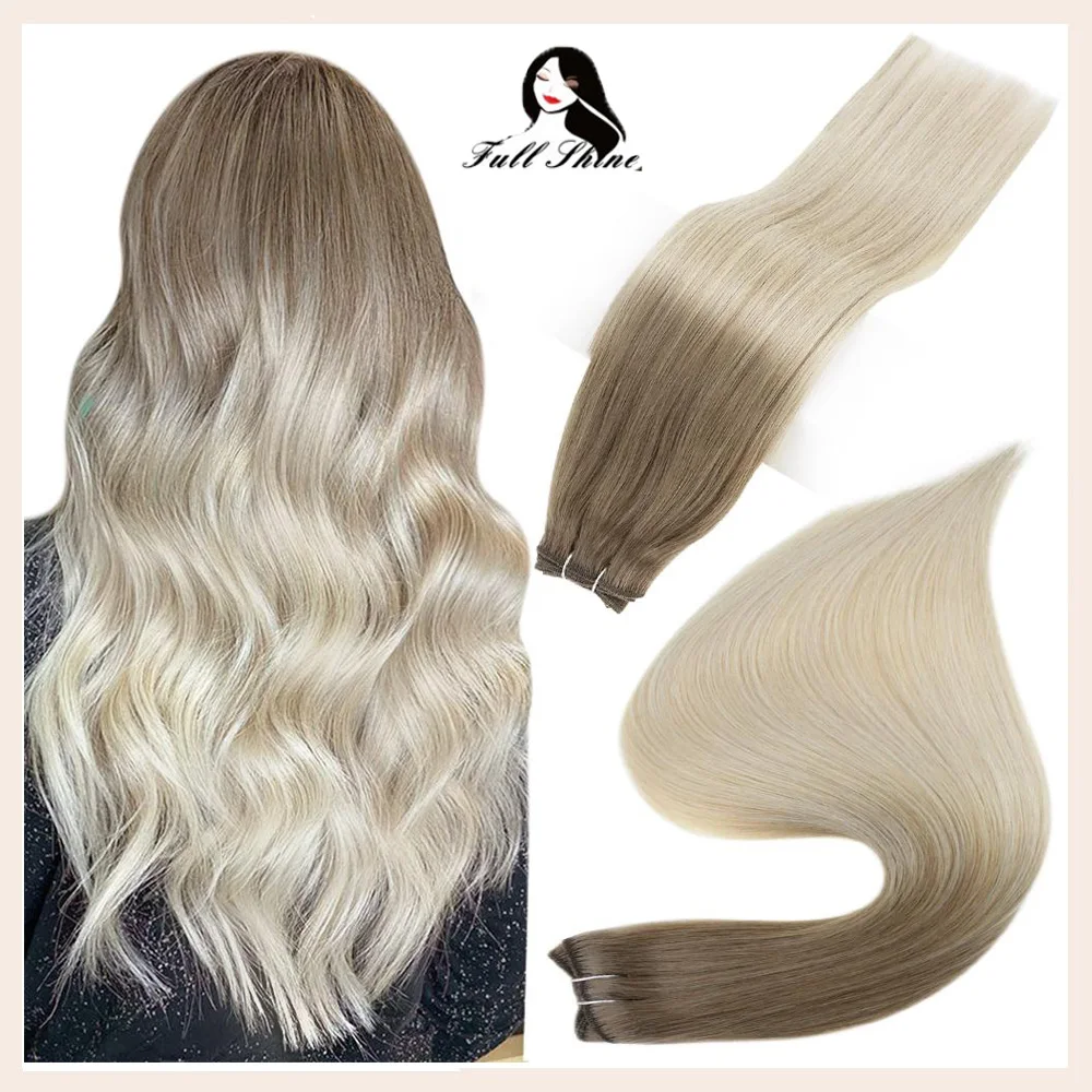 Полностью Сияющие волосы, уток, невидимые волосы, пряди, цвет Омбре, 100 г, кожа, уток, двойная машина, волосы для наращивания, Remy, волосы для наращивания