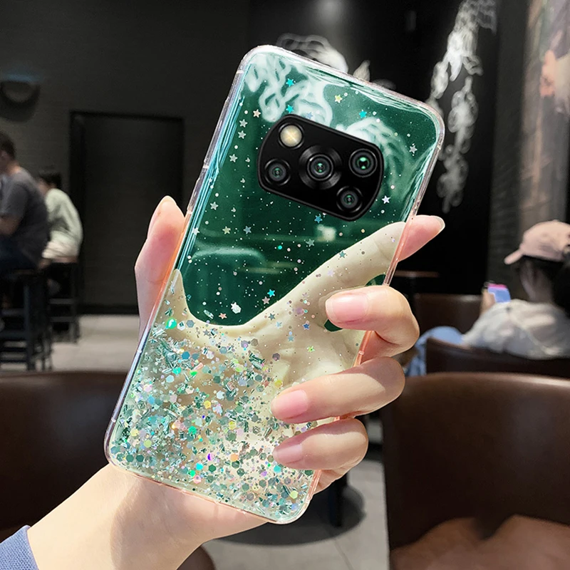 Блестящий чехол со звездами для POCO X3 NFC, милый сексуальный чехо...