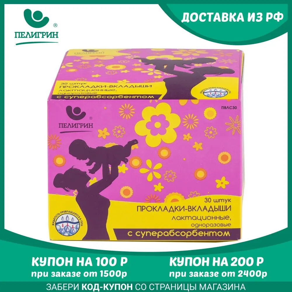 Прокладки - вкладыши лактационные одноразовые для груди с суперабсорбентом 30 шт. Пелигрин ПВЛС30