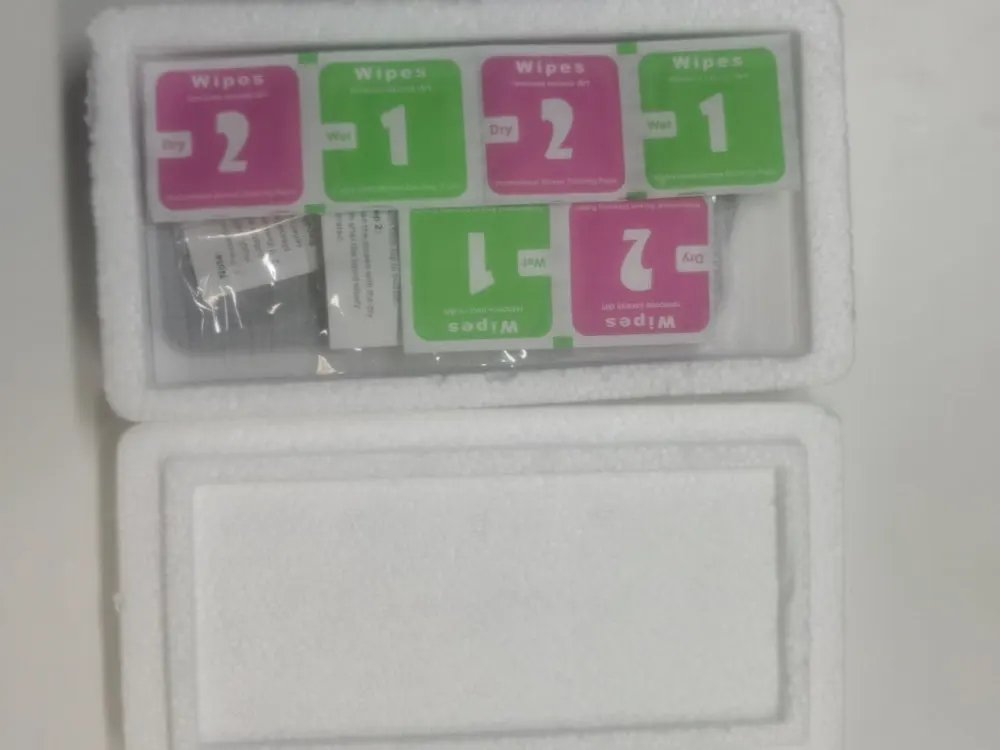 Качество закалки пленки очень хорошее, размер в самый раз, и он имеет эффект Анти-отпечатков пальцев. Очень высокое разрешение после вставки. На весь экран выглядит очень четко. Пузырьков нет. Очень удобно на ощупь.