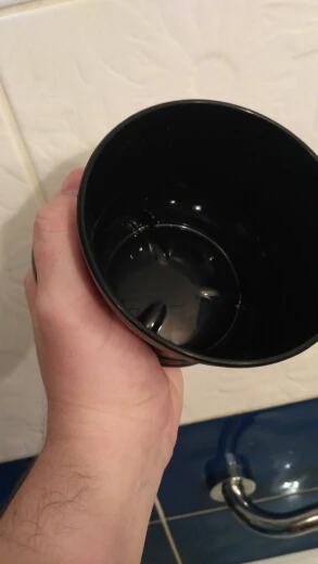 Кружка поставляется с производственным дефектом, булавка, удерживаемая в руке, слишком кривая, и невозможно прикрепить пальцы к ней, чтобы держать кружку так, как она была разработана. Вы можете использовать его, но я получил немного из него с этой деталью.