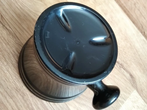 Качество не очень. Заметен слой. Минус в том что чаша очень высокая. Помазка и с короткой ручкой и помазка и с пучком от 24 мм и выше взбивать пену неудобная. Простая салатница лучше чем эта чаша. На чёрной виден белый налёт после использования.