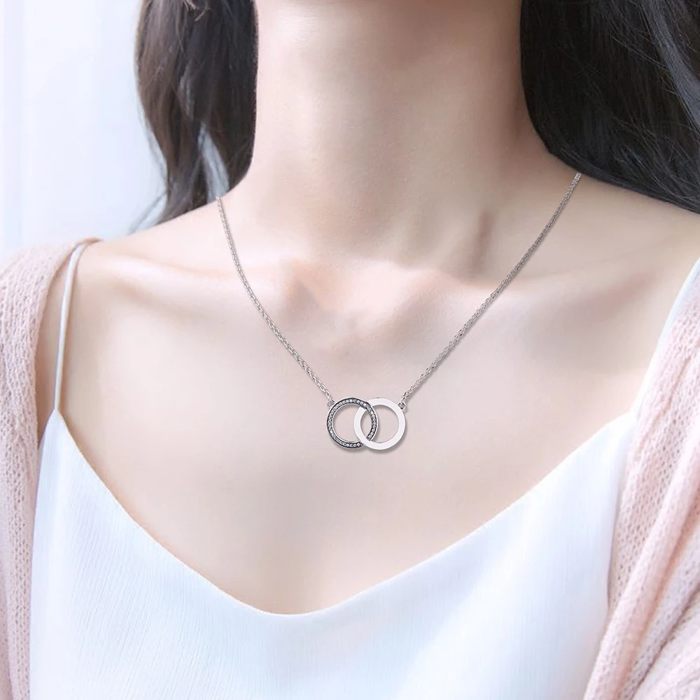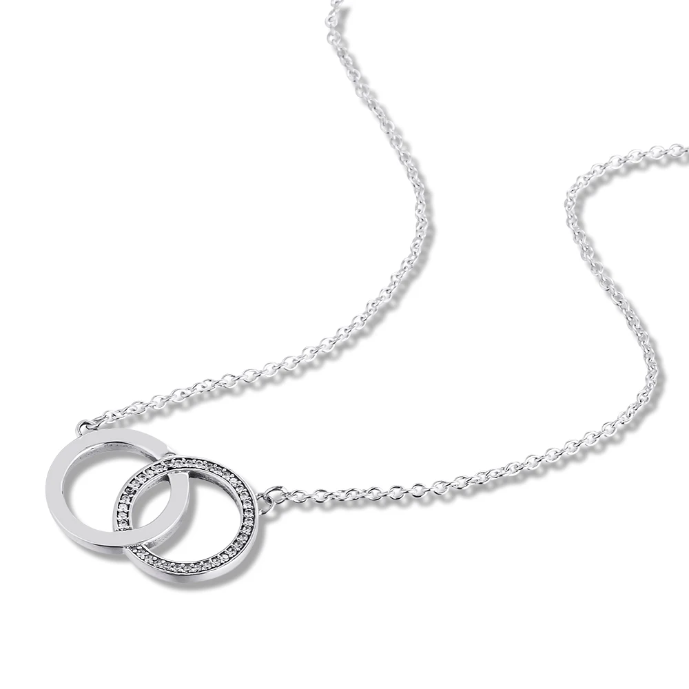 Прозрачные CZ круги ожерелья для женщин 925 пробы Серебряная цепочка ожерелья и подвески Изящные ювелирные изделия подвеска