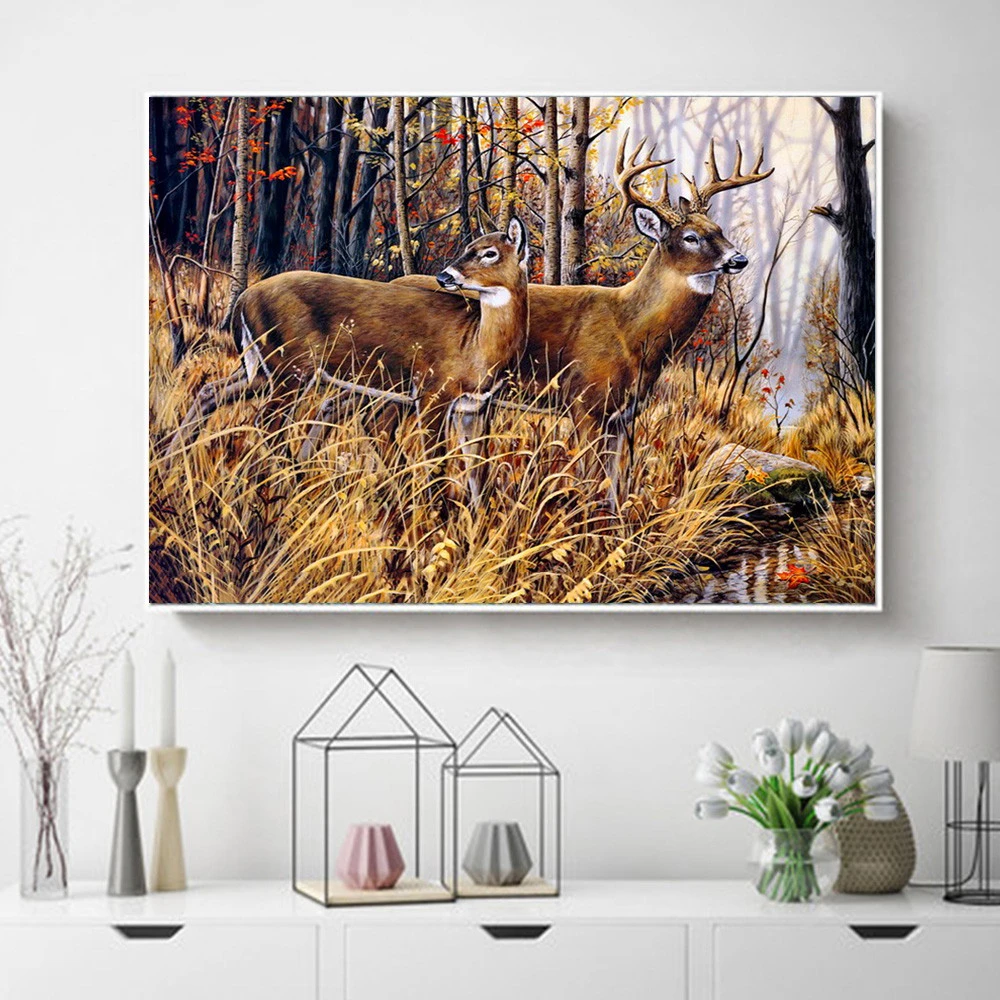 Алмазная мозаика Huacan, картина с квадратными стразами, животное, олень, украшение для стен, мозаика для дома