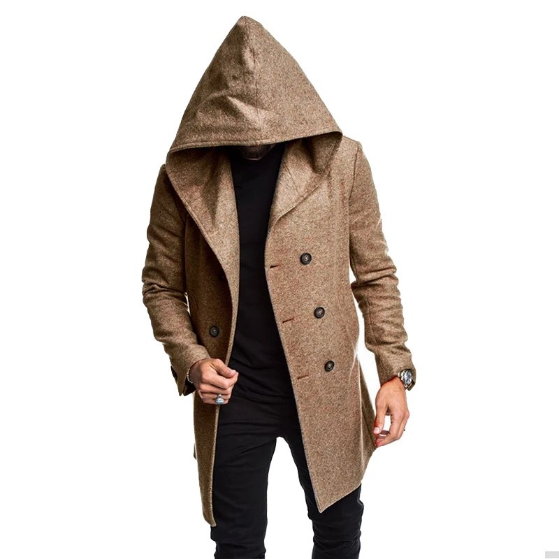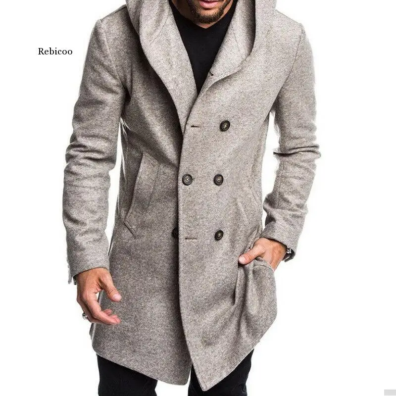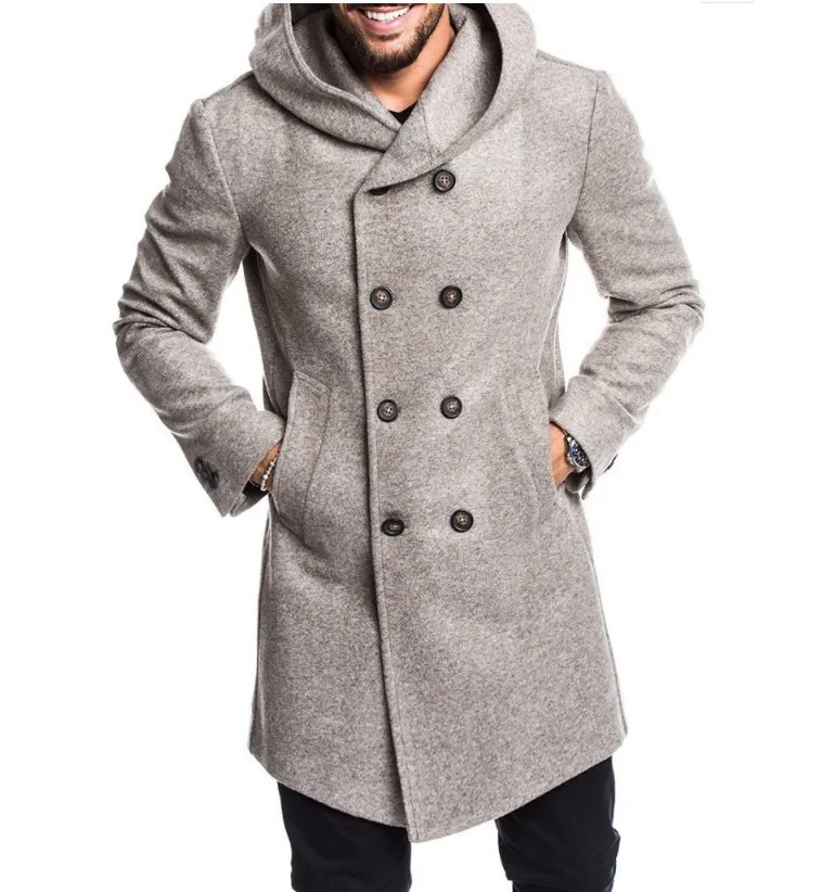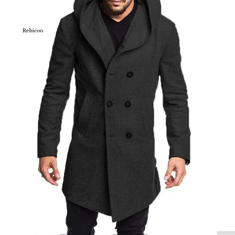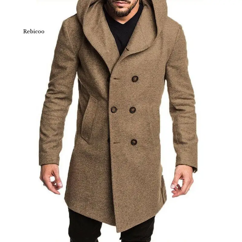 Пальто мужское шерстяное двубортное с капюшоном, модная длинная верхняя одежда, пиджак с длинным рукавом, Размеры M-Xxxl