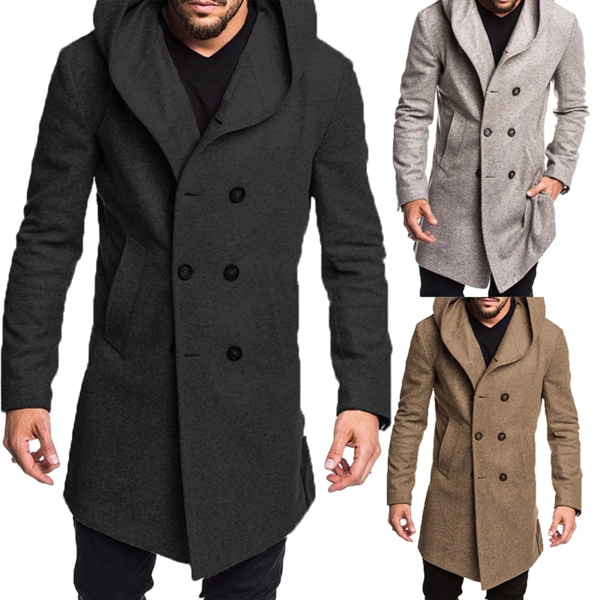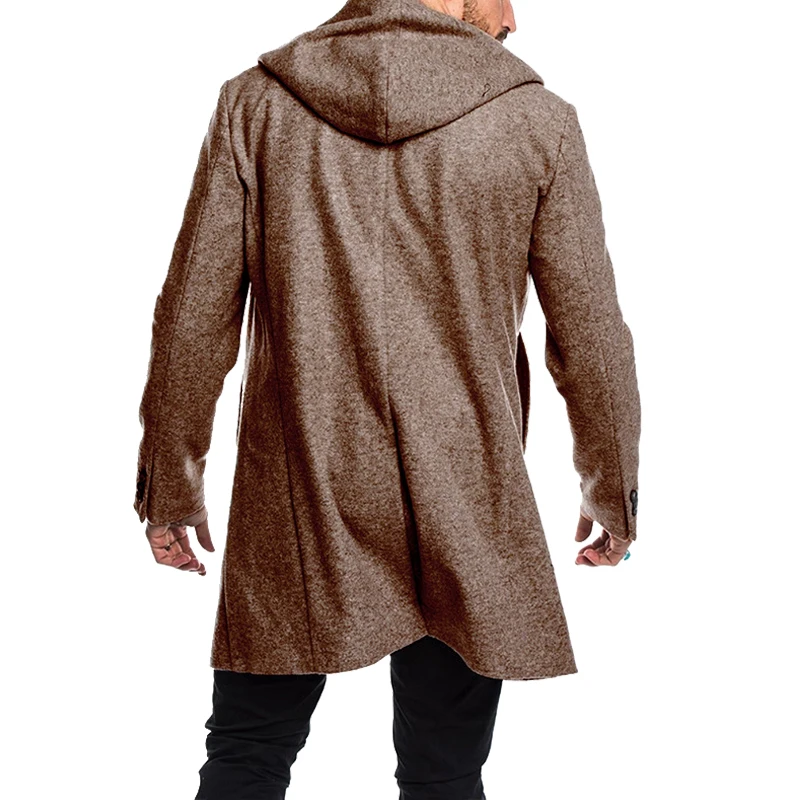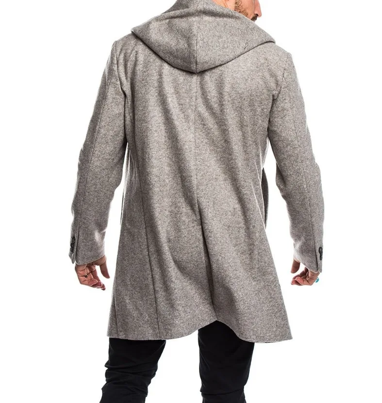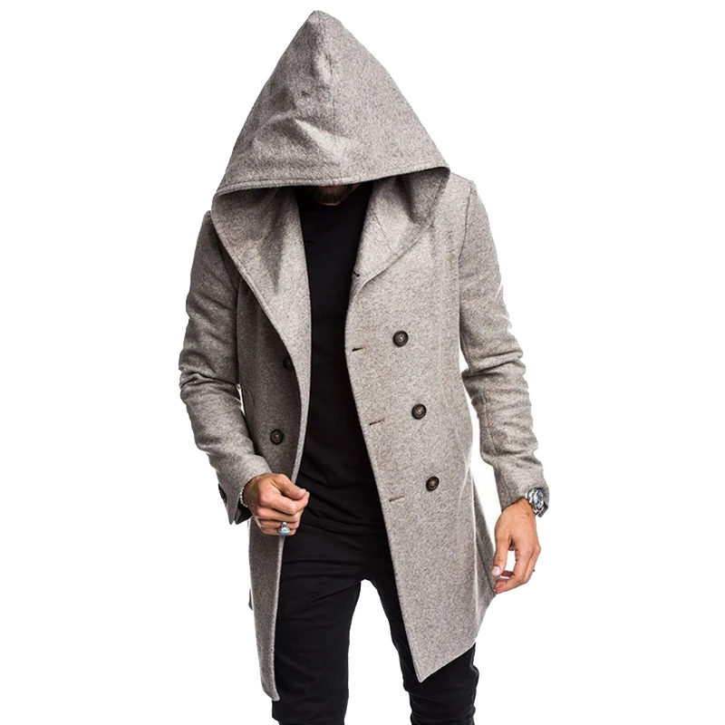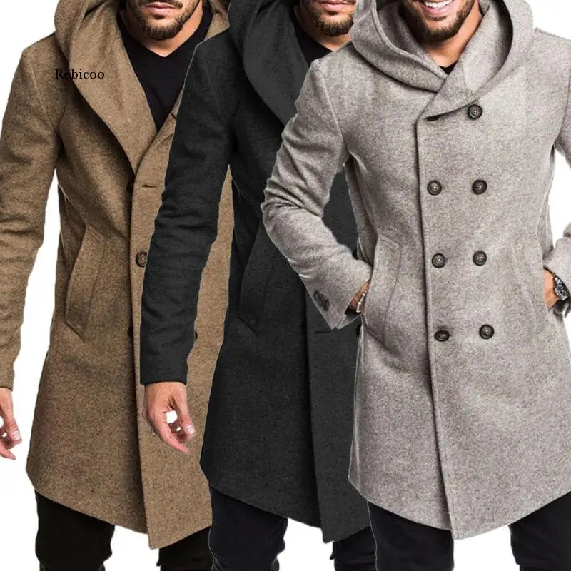 Пальто мужское шерстяное двубортное с капюшоном, модная длинная верхняя одежда, пиджак с длинным рукавом, Размеры M-Xxxl
