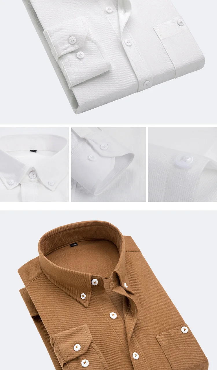 Однотонная мужская рубашка, Повседневная, Вельветовая, с длинным рукавом, тонкая, мужская рубашка, для работы, для бизнеса, бренд Chemise Homme, оверсайз, в полоску, Camisas