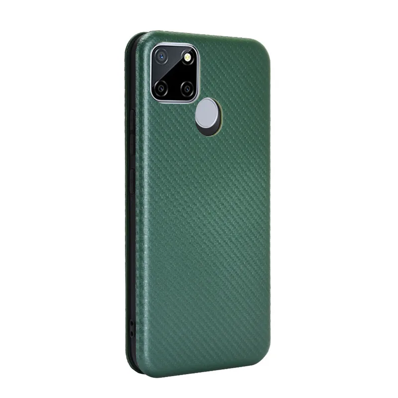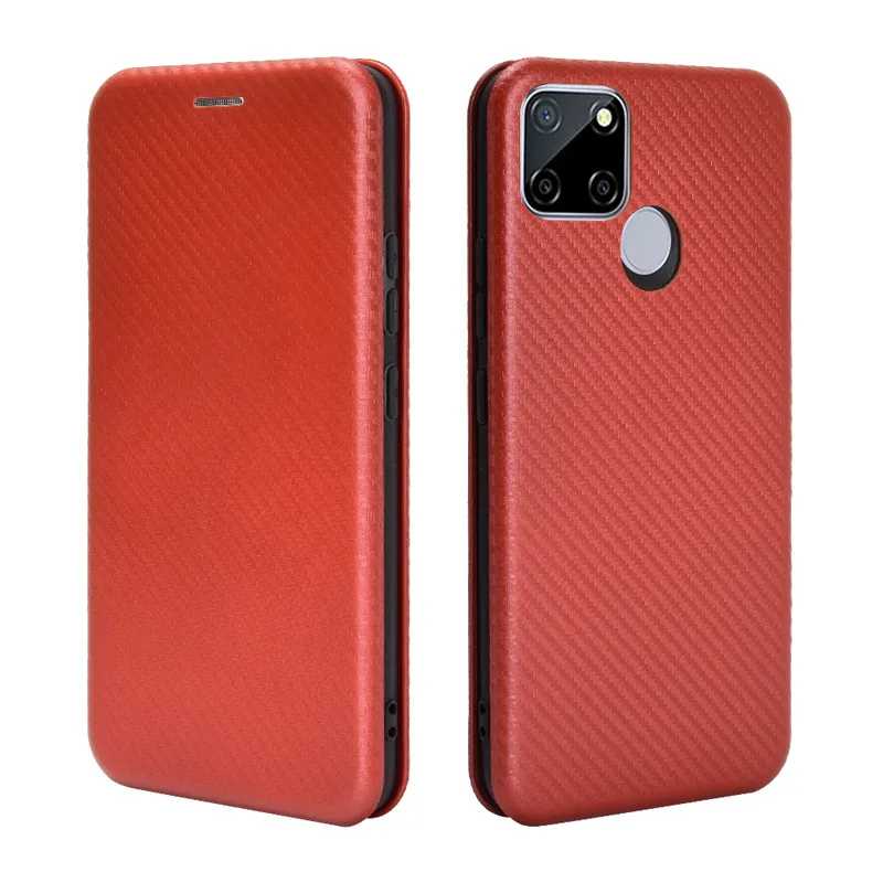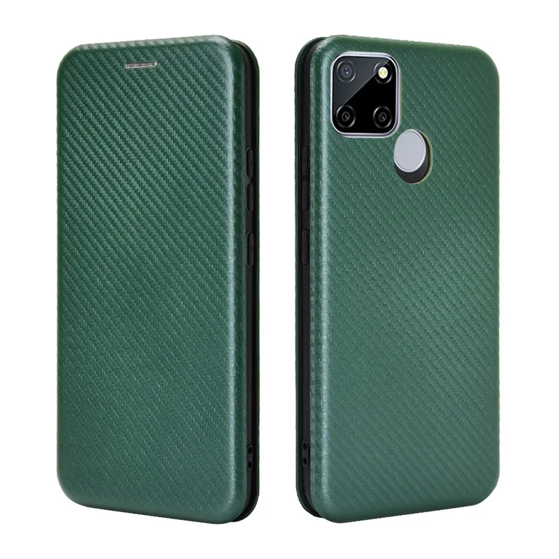 Чехол-книжка из углеродного волокна для OPPO Realme C21, кожаный че...