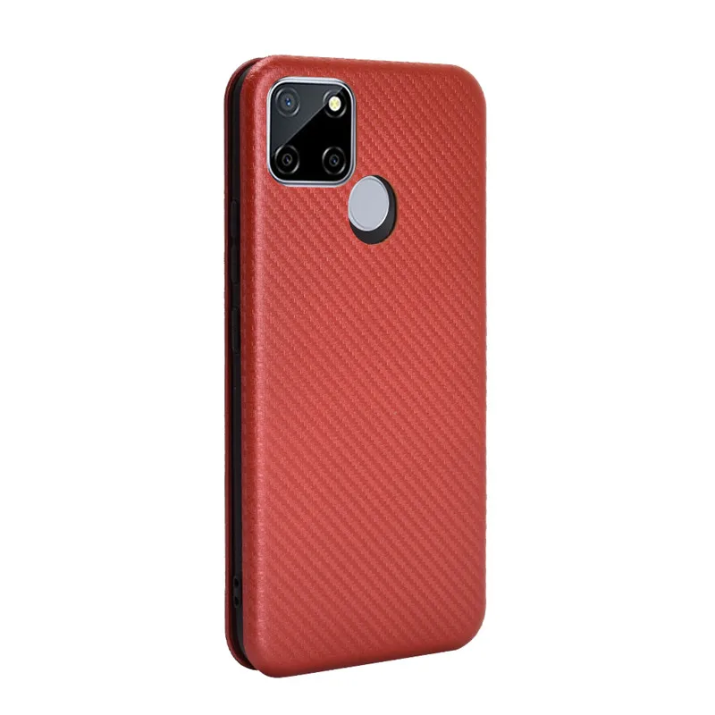 Чехол-книжка для Realme Narzo 20, кожа, тонкий, из углеродного волокна, с отделением для карт