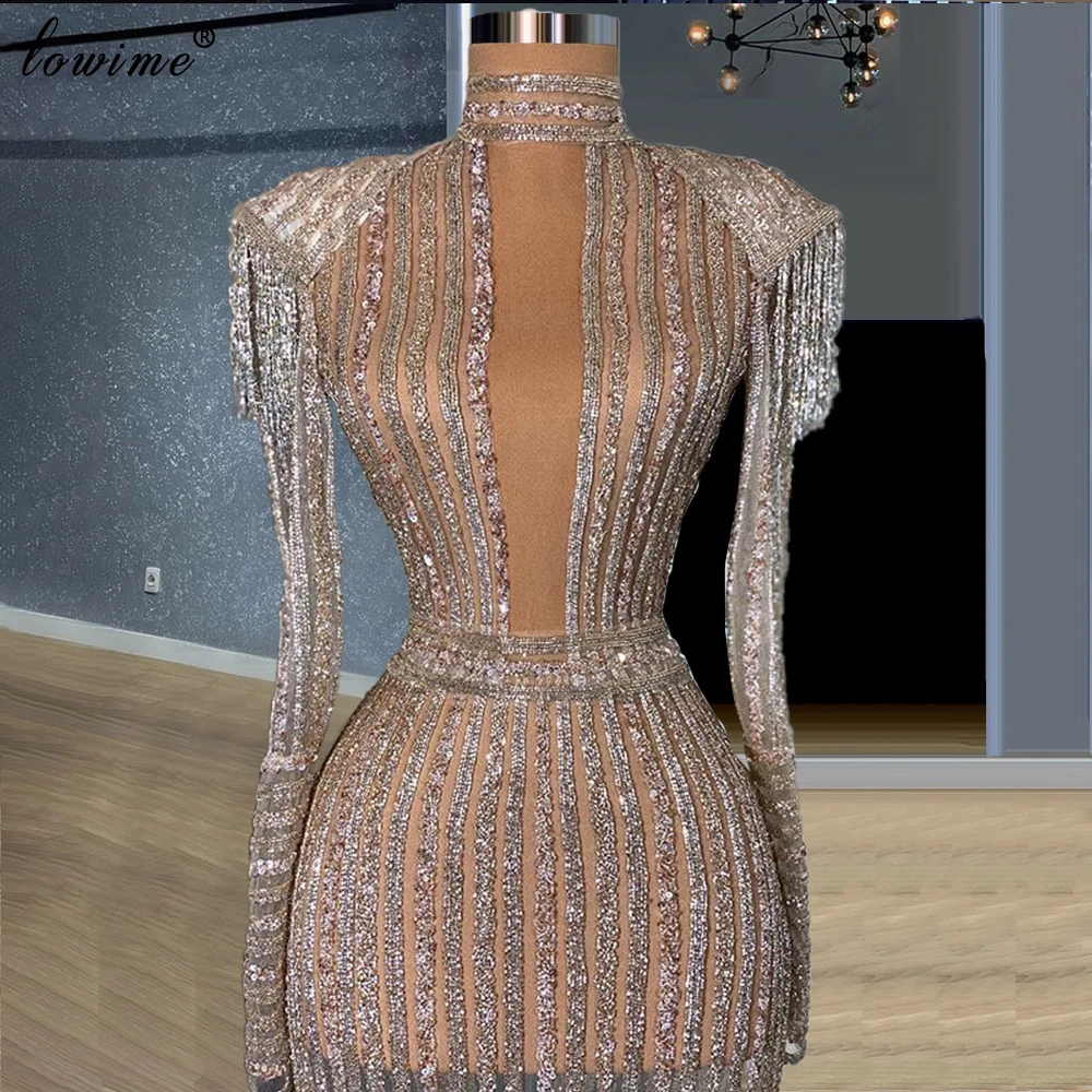 Женское коктейльное платье, украшенное бисером, с длинным рукавом, ...