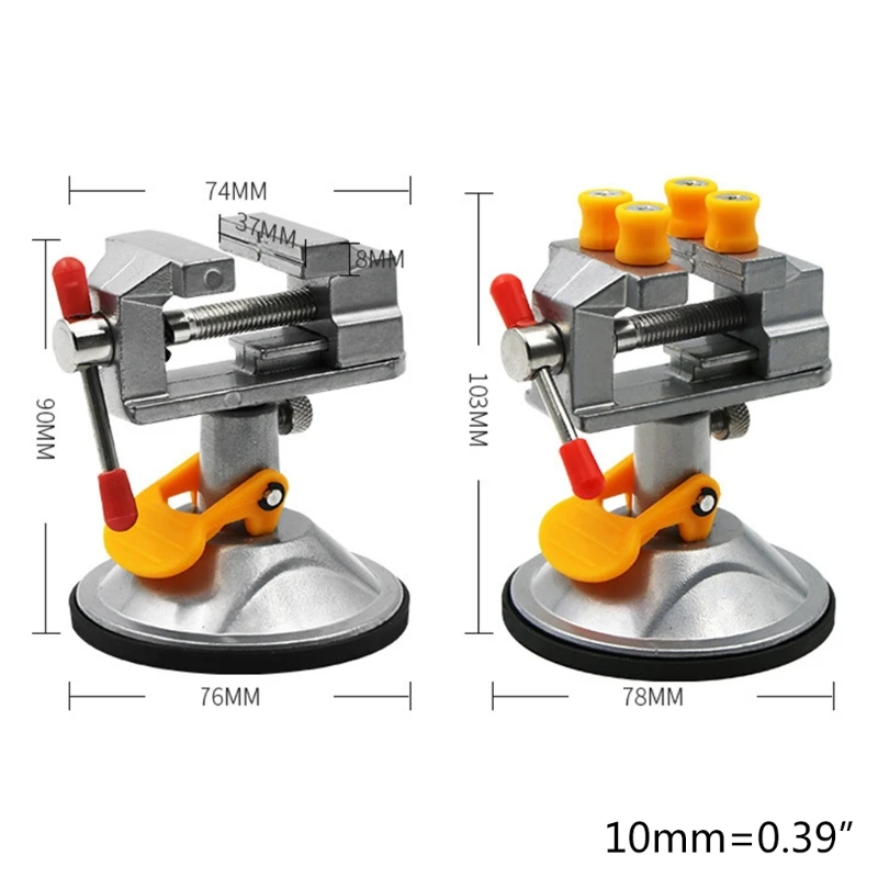 Тисочки откровенно слабенькие и маленькие. Присоска держит неплохо, но недолго. При зажиме губки тисков перекашиваются и это конструктивный недостаток. Подойдут для небольших деталей из мягких материалов и деликатной обработки.