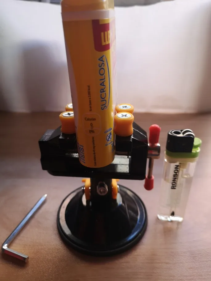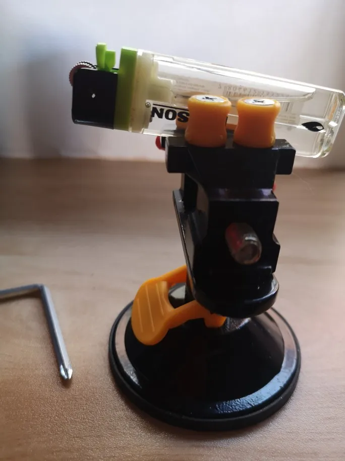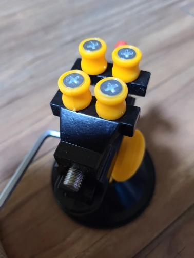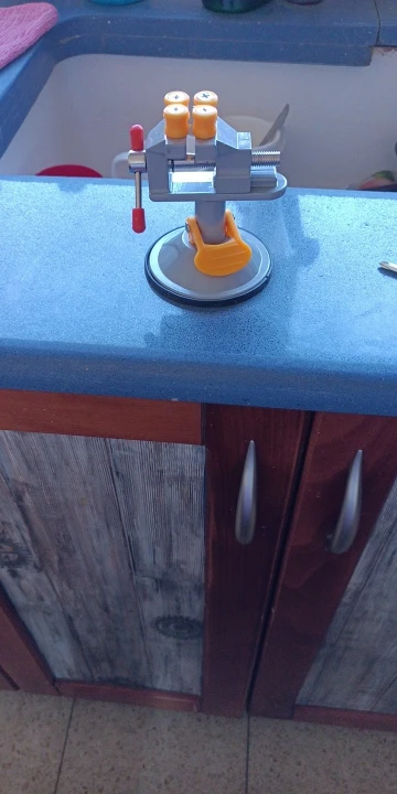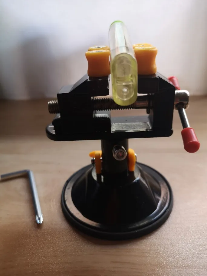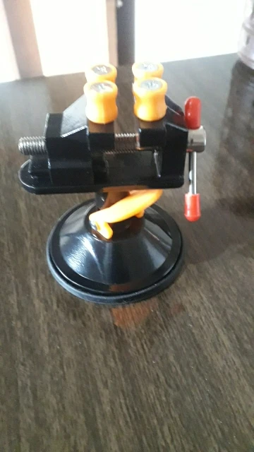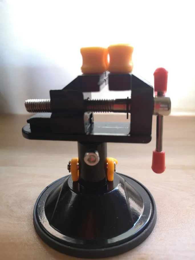 Schöner kleiner Schraubstock für kleinere Lötarbeiten super geeignet. Braucht allerdings einen sehr flachen Untergrund um zu halten. Eine leichte Oberflächenrauheit führt zum Unterdruckverlust.
