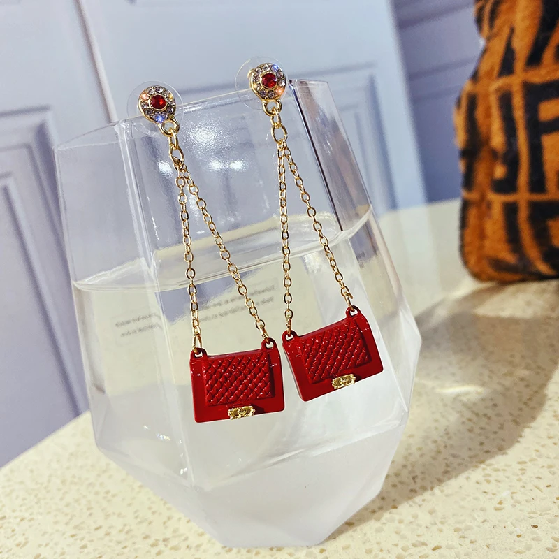 Женские серьги с кисточками в стиле красной сумки креативного дизайна, модные ювелирные украшения, уникальные массивные серьги, вечерние ювелирные изделия, подарки