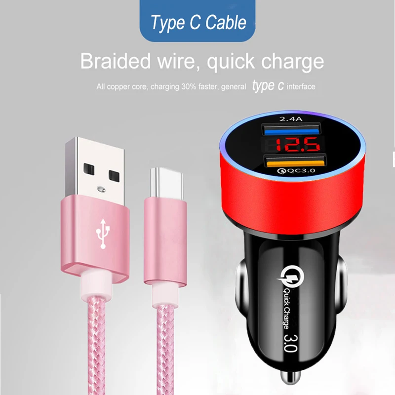 QC3.0 двойное автомобильное зарядное устройство USB Тип C USB плете...