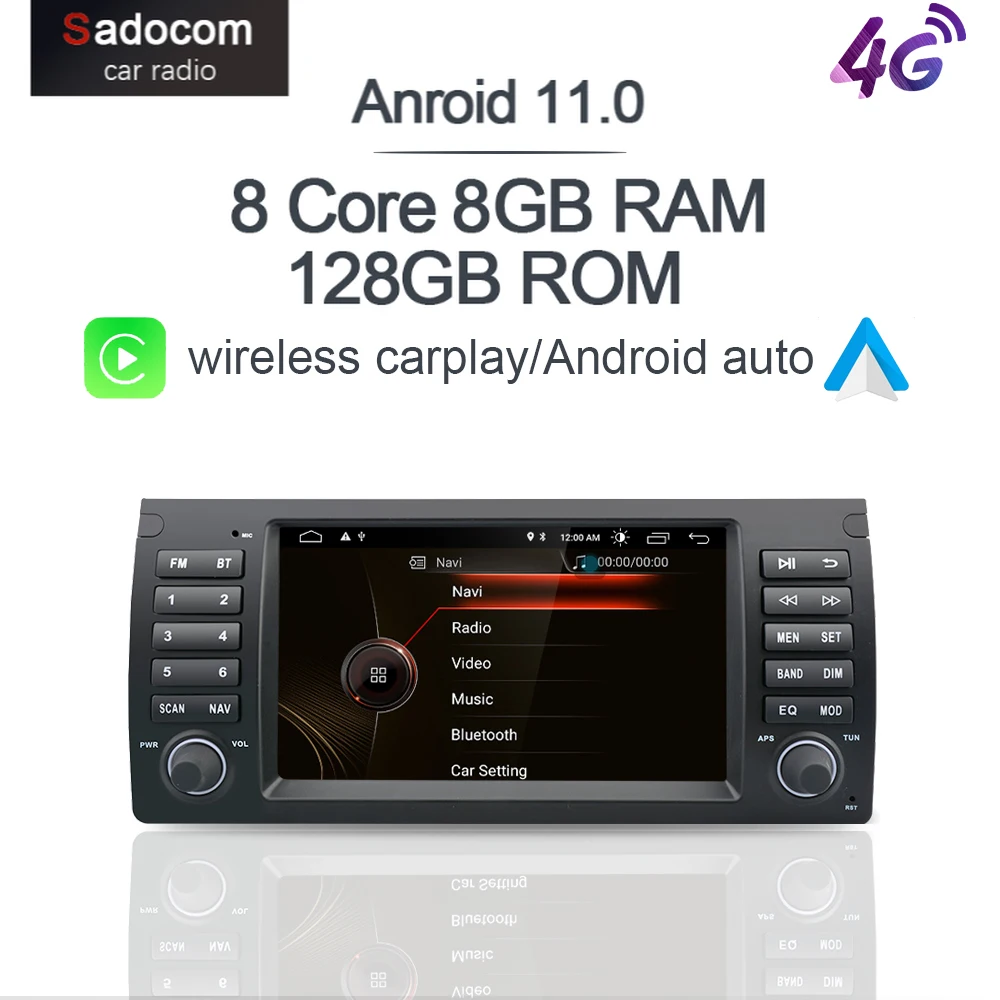Carplay 7 "Android 11,0 6 ГБ + 128 Гб 4G LTE автомобильный dvd-плеер GPS WIFI Bluetooth TPMS Авторадио для BMW M5 E39 X5 E53 1995-2007