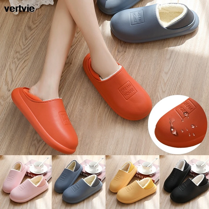 Водонепроницаемые зимние хлопчатобумажные тапочки vertvie, женские домашние теплые домашние тапочки, кожаная обувь с хлопком